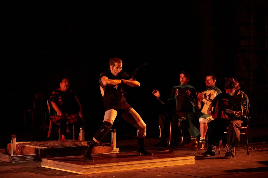Ici, avec Israel Galván, la fête est à l’honneur à la Cour d’Honneur. On a néanmoins d’avantage le sentiment d’assister à une fin de soirée. Ce moment fragile, dans les vapeurs de l’alcool, où les passions se déchaînent. Avec La Fiesta c’est de ça dont il s’agit. Musiciens, danseurs et chanteurs sévillans libèrent leurs duende le temps d’une représentation. L’énergie qu’ils déploient est folle et, on le comprend très vite, ils ne sont pas là pour faire du joli. Bien au contraire. Tant au niveau du chant que de la danse, ils viennent chercher la matière qui gratte, qui dérange, qui dissone et nous entraîne dans un tourbillon sans fond. Bien qu’à certains moments la forme peut apparaître trop démesurée et trop bruyante, il est intéressant de recevoir le travail d’Israel Galván – danseur magnifique jouant avec puissance dans cette nouvelle création. En effet, il faut dire que la manière dont il a de s’emparer du folklore espagnol et de revisiter le flamenco est tout à fait inédite. Ces traditions festives sont bien ancrées dans une mythologie commune et une culture partagées, et la manière qu’il a de la tordre ouvre une nouvelle brèche curieuse et intéressante.