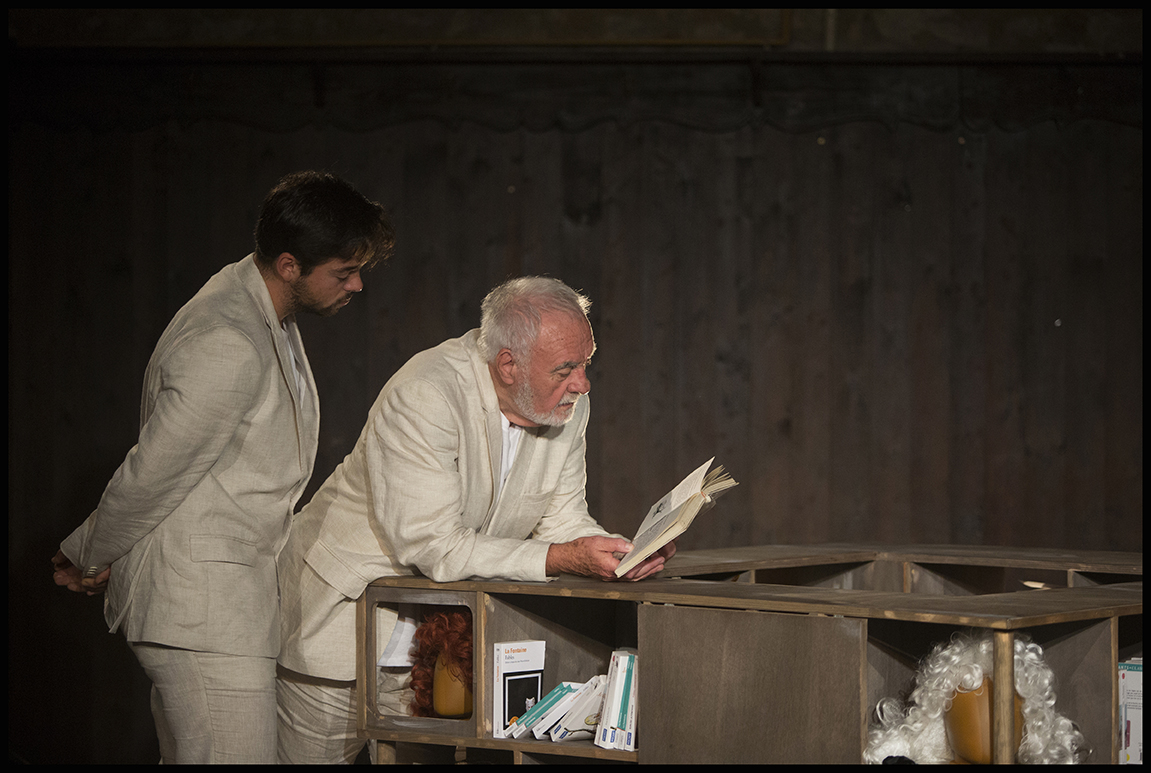 Yves Graffey et Lomig Ferré merveilleusement complices, jouant de leur âge et s’en déjouant aussi, font de chaque fable une courte et malicieuse saynète. Conteur plus qu’acteur, ensemble ou chacun leur tour, c’est avec les moyens du bord, un escabeau, un livre, un crayon, une perruque, qu’ils illustrent avec simplicité chaque fable. Rien de trop. Et pourtant il est bien là, ce bestiaire fabuleux, belette et petit lapin, âne et chien, grenouille et bœuf, milan et rossignol… Elle est bien là, la férocité du monde. Parfois on s’essaie à une version anglaise, on tente même le joual. C’est surprenant et fort drôle. Non sans gravité parfois quand la morale avec justesse fait encore tristement échos aux maux immuables de toute société. Mais nos deux compères ne s’appesantissent jamais. Il y a de la légèreté et un plaisir évident, une vrai jubilation, à transmettre, à faire découvrir pour qui ignorerait encore, ces petits chefs d’œuvre de la littérature française. Une jolie réussite, vraiment.
