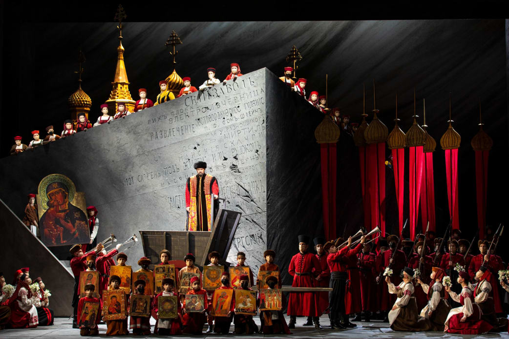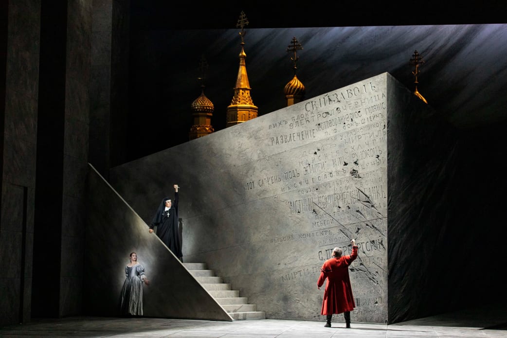 Les décors présentent de beaux tableaux, mais presque trop léchés, et même figés, d’une représentation valorisant le folklore russe à grand renfort d’icônes et de bataillons de streltsy en tenues impeccables. Le fond noir déchiré du deuxième Acte et l’atmosphère onirique et non réaliste de la forêt du cinquième et dernier Acte présentent beaucoup d’intérêt sur le plan visuel et illustrent davantage cette longue complainte sur une Russie en perdition qu’est La Khovantchina, déchirant cri du cœur d’un compositeur au bord de la mort et qui s’éteint à 42 ans échouant à achever une œuvre à laquelle il se consacra près d’une décennie.