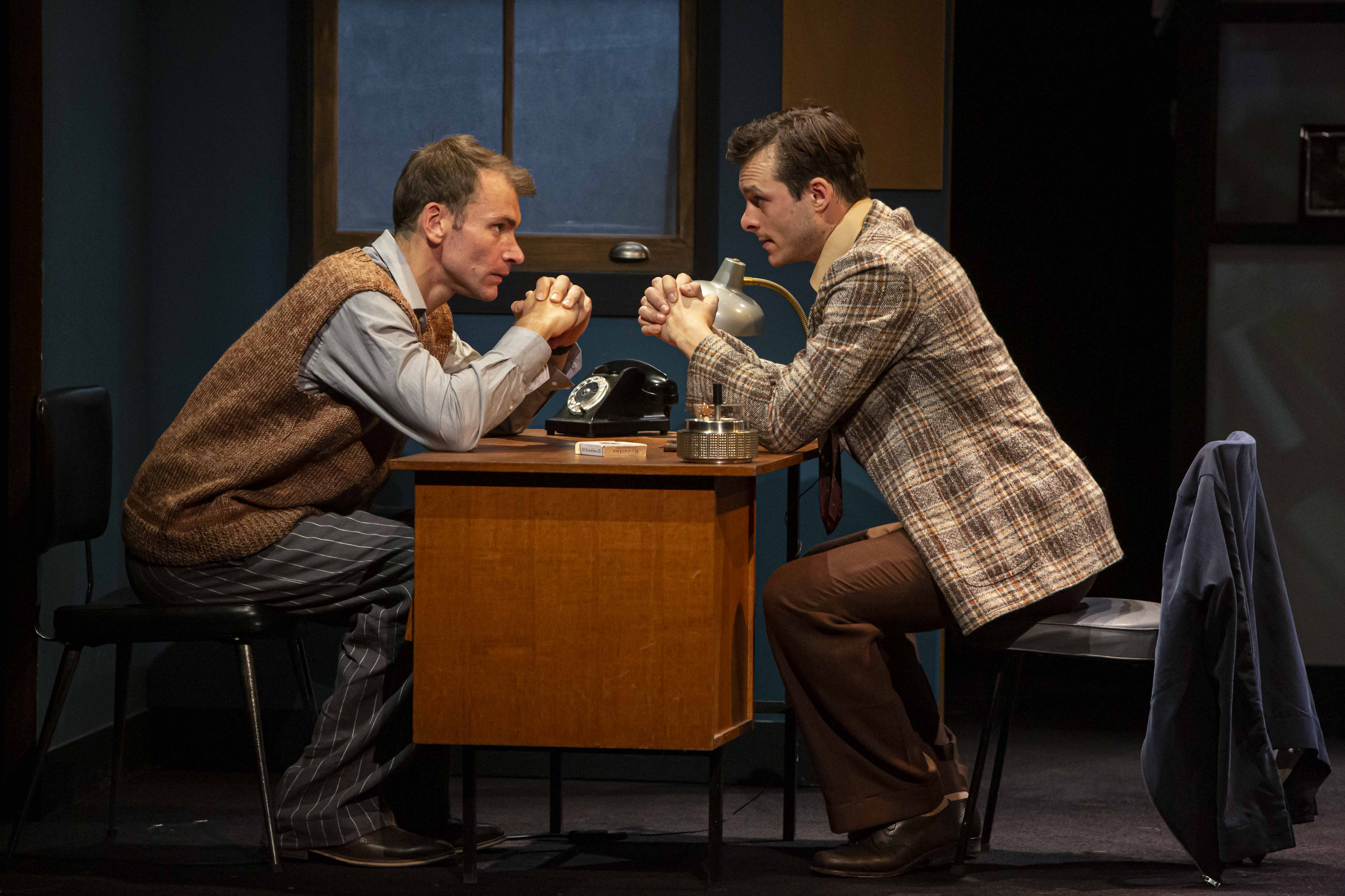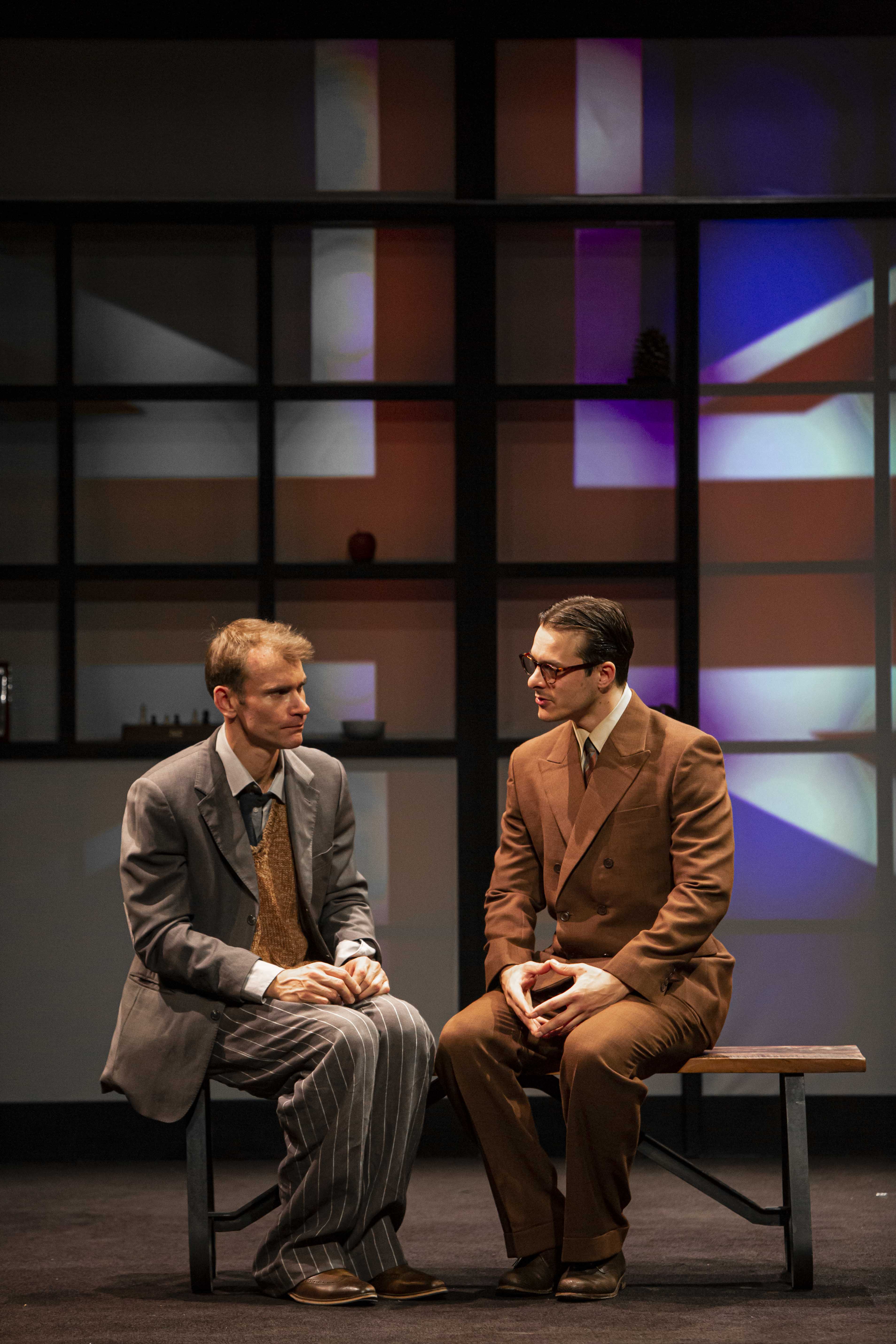 Alan Turing revit sous nos yeux grâce à la remarquable interprétation toute en sensibilité et en subtilité de Matyas Simon. Il est à la fois l’homme et l’enfant qu’était Turing, avec son intelligence fulgurante et ses comportements parfois un peu maladroits. Éric Pucheu, pour sa part, interprète avec une égale facilité le sergent Ross qui comprend vite à quel point l’affaire à laquelle il est confronté est atypique et le jeune serveur à l’origine du procès fatal. Il interprète donc alternativement l’empathie et la sympathie, puis l’égoïsme et le cynisme. Soutenus par la mise en scène subtile de Tristan Petitgirard, jouant si bien avec les années et les allusions diverses, devant un mur formé de cases en forme d’échiquier, projetant des images ou des extraits de vidéos, rendant la pièce aussi passionnante qu’un film, les deux comédiens nous offrent une belle leçon de vie, de tolérance et d’Histoire expliquant l’engouement du public pour cette « Machine de Turing » découverte pour la première fois lors du festival d’Avignon 2018 et qui continue à fonctionner avec un succès dont on ne peut que se réjouir. Il est bon qu’aujourd’hui nous gardions éternellement le souvenir d’Alan Turing a qui nous devons tant !