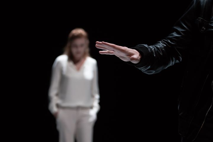 Et c’est sur ce plateau obscur que la lumière vient soudain révéler au spectateur à demi somnolent, un jeune garçon au blouson noir et une femme en tenue blanche.