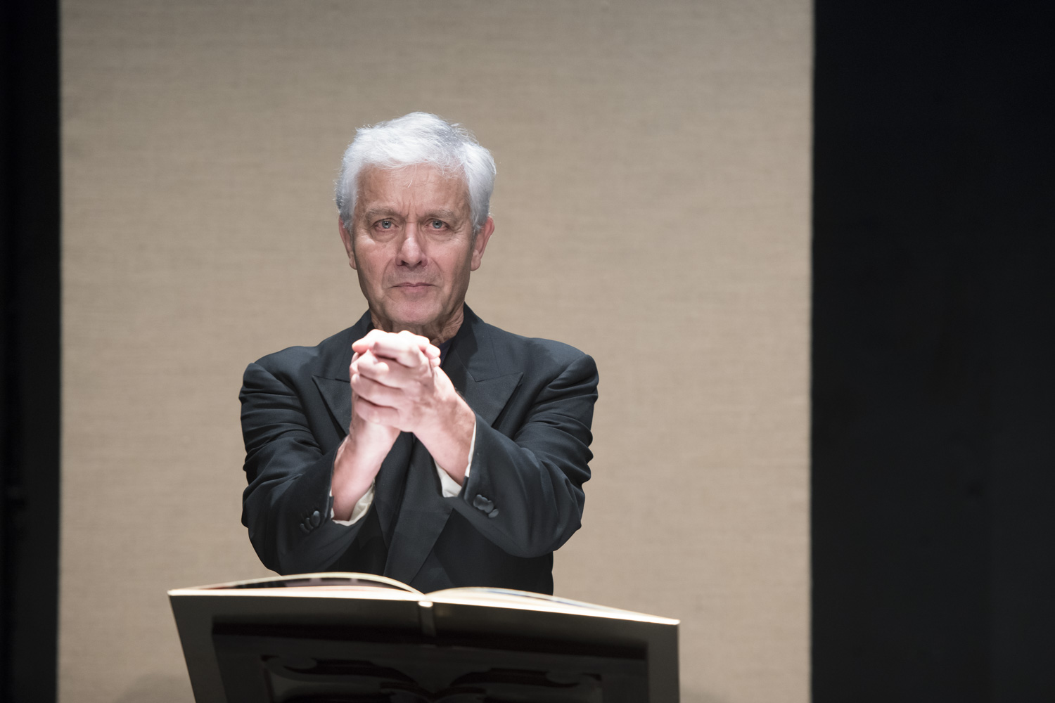 Didier Sandre nous invite chez lui, pour un moment d’intimité avec Claudel. Leur relation est ancienne et leur complicité nous touche, quelle que soit notre profession de foi. Le comédien connait chaque grain de peau de ce texte tel un être aimé, en a gouté la suavité, l’exaltation, la poésie et par sa bouche le verbe se fait chair. Ministre plénipotentiaire au Brésil à 50 ans, Paul Claudel rédige cette confession en 1917, mélange de réflexions sur l’Europe en guerre, la luxuriance de certains paysages exotiques, sa foi, ses doutes et sa solitude. La prose est rimée et suit le rituel liturgique de la messe dite de Pie V.
