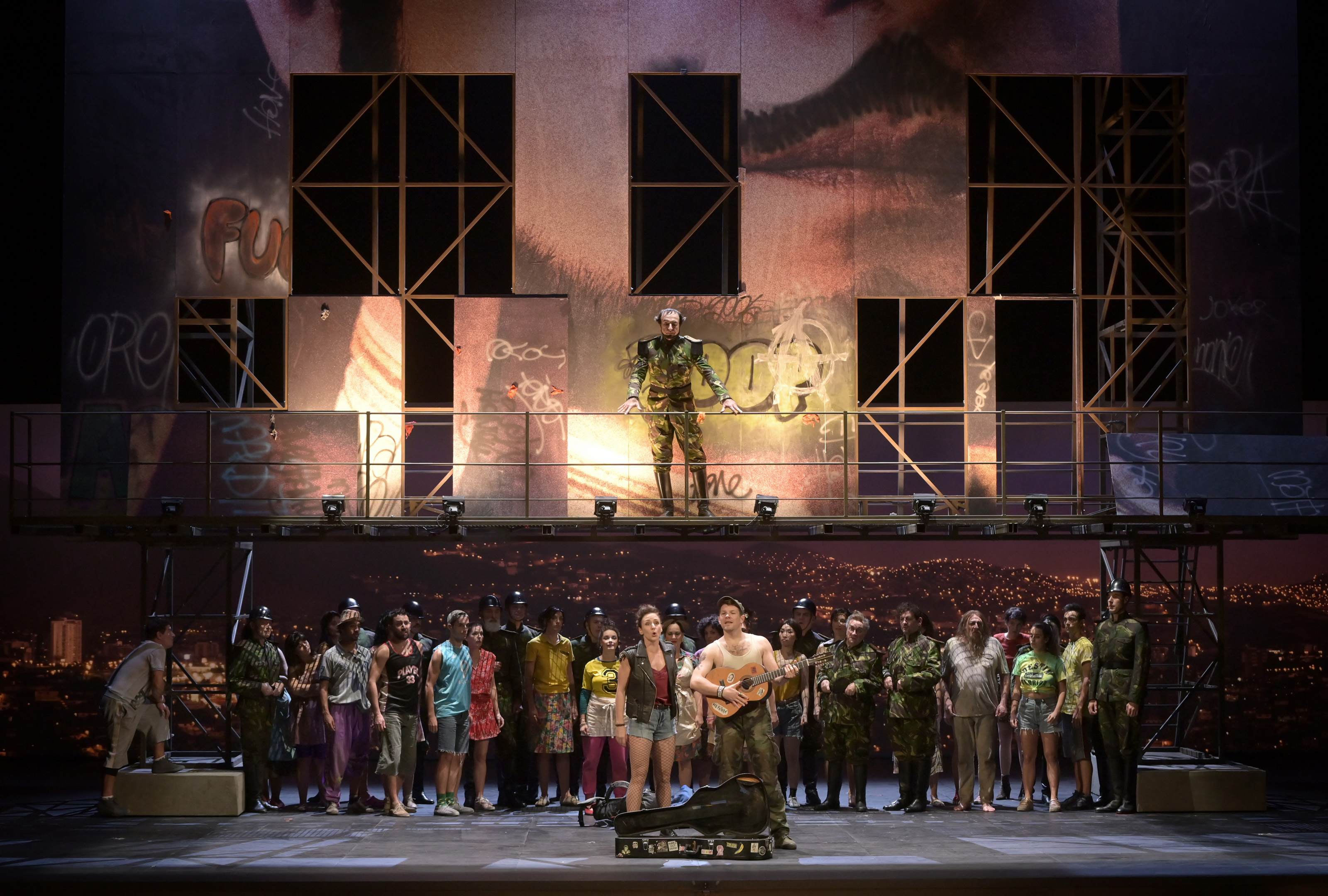 Au Théâtre des Champs-Elysées souffle une bourrasque de folie, qui vous décoiffe assurément. Et pourtant, d’une histoire de crève-la-faim, d’une chanteuse des rues se prostituant pour assurer sa subsistance, se livrant à un tyran, il n’y aurait pas de quoi rire. Oui, mais comme le souligne le metteur en scène Laurent Pelly, « plus c’est noir… plus c’est drôle. ». Et cette Périchole là ne le démentira pas. Fini le Pérou, nous sommes partout où règne la dictature. Banlieue grise et palais bling-bling. Et nos deux héros, zonards limites punk sans chiens, pleurent misère. Mais Laurent Pelly a le sens du théâtre et vous monte ça allegro, avec une énergie de coucou-suisse remonté à bloc. C’est fort drôle, parfois tendre, poétique aussi, et toujours à-propos. Les chanteurs sont dirigés au cordeau, formidables acteurs ici aussi, sans oublier les chœurs comme toujours avec Laurent Pelly assurant leur mouvement avec maestria, acteurs eux-aussi et bougeant comme pas deux. C’est d’ailleurs ça qui est aussi remarquable, combien tout est chorégraphié minutieusement, combien chaque geste n’est jamais laissé au hasard, mais vaut aussi bien qu’un discours. Jouant des contrastes entre la rue, haute en couleur, un peu cradingue, et d’une grande et joyeuse liberté, et le palais tout en miroir et dorure où les femmes sont des bimbos d’un même modèle, blondes peroxydées corsetées, entravées dans des robes aussi gonflées que leur bêtise et leur minauderie de garces méprisantes. On s’en souviendra longtemps aussi de la scène d’ivresse et du mariage qui s’ensuivit. Une soulographie d’anthologie épatante et jamais dans la caricature ! On ose même un peu plus loin un clin d’œil hilarant à Mozart avec quelques notes de La flûte enchantée devant l’hésitation de Piquillo à se pendre. Rossini n’avait-il pas surnommé Offenbach « le petit Mozart des champs Elysées » ? Juste retour des choses et bel hommage rendu. Laurent Pelly ne rate aucune scène attendue et entraîne avec lui une troupe d’élite qui visiblement s’en donne à cœur joie et embarque la salle avec elle. Et le compagnonnage avec Marc Minkowski, retrouvaille heureuse, est une valeur hautement ajoutée. Ce dernier mène à la baguette et tambour battant Les musiciens du Louvre, qui dans la fosse tout comme les chanteurs sur le plateau, crépitent et font des étincelles sans jamais négliger les mille et une nuance de leur partition. On les surprend même à chanter, un comble ! On le redécouvre encore ici, Offenbach et l’Opéra-Bouffe, derrière l’insolence et la satire, c’est d’un grand raffinement et Marc Minkowski nous le fait entendre et comprendre avec grande clarté. Périchole est une femme forte, puissante dirons nous aujourd’hui. Antoinette Dennefeld aussi fine comédienne que musicienne accomplie, belle voix au timbre clair, offre à son personnage une réelle sensibilité. Ironique et mordante dans l’air « Que les hommes sont bêtes » elle sait aussi être sensuelle, « tu n’es pas beau » est une vrai déclaration d’amour. L’air de la lettre est d’une profondeur, nécessité faisant loi, qui pourrait être tragique. Et dans la scène de la griserie elle est d’une justesse ébouriffante, et fort drôle avec ça, sans effort. Stanislas de Barbeyrac campe un Piquillo irrésistible, amoureux transi un peu dépassé par les évènements. Lui également allie à un sens du jeu affirmé, une voix puissante, claire et projetée sans effort. Son air « On me proposait d’être infâme » montre toute l’étendue de son talent. Laurent Naouri, baryton-basse, visiblement s’amuse comme un fou. Il est un vice-roi, tyran qu’on aime à détester. Le trio des trois cousines, comme des courtisanes, que forment Chloé Briot, Alix Le Saux et Eléonore Pancrazi, est formidable d’abatage et d’un humour ravageur. Avec ça, un swing d’enfer dans le mouvement. Comme le duo de courtisans aussi veules que ridicules que sont Rodolphe Briand et Lionel Lhote. Et cette chronique serait incomplète si nous ne parlions pas du Chœur de l’Opéra de Bordeaux sous la direction de Salvatore Caputo, lequel dirigé par Laurent Pelly fait montre d’une capacité de jeu aussi bien collective qu’individuel, faisant partie intégrante de l’action et loin de faire de la figuration. Mais ça, c’est la patte et l’intelligence de Laurent Pelly qui ne néglige jamais rien… Les applaudissements nourris et les rappels qui ont salué cette création augure un long avenir à cette production en tout point réussie. On sort du Théâtre des Champs-Elysées aussi grisé que Périchole, et le froid qui vous mord sur notre scooter n’a pas éteint notre enthousiasme.