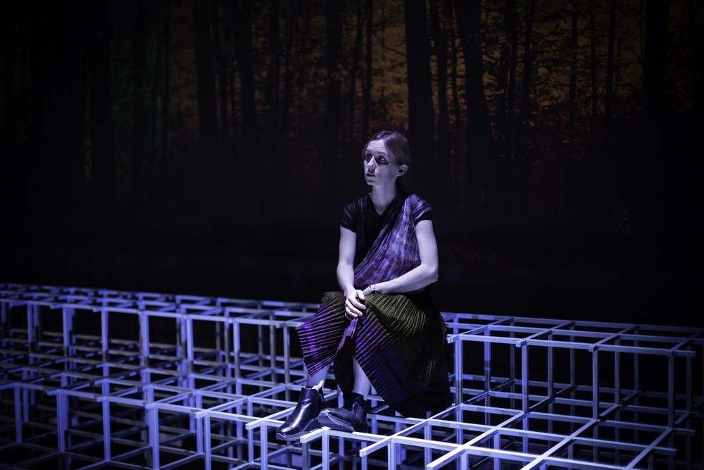 La plus précieuse des marchandises est curieusement facile à regarder avec un tel sujet. Le rire peut parfois apparaître, discret mais tout de même. La bûcheronne et le bûcheron ne paraissent pas noyés dans une époque fixe. Ils évoluent sur une immense surface métallique, ils s’y promènent, s’y battent, jouent de la musique ou chantent. Pourtant, ils sont en 1942 et savent ce que sont les « sans-cœurs ». On se laisse entraîner par leurs échanges, et changement de décor, cette narratrice sort de l’ombre et raconte. Deux temps, deux rythmes. Dans ce texte, Jean-Claude Grumberg « évoque » un sujet noir en mêlant le vrai et le faux. Charles Tordjman a su prendre tous ces éléments, les disposer et les éclairer, les faire se suivre et se superposer en suivant sans doute la magie époustouflante de ce texte. On sait de quoi on parle, et la vérité peut être double. Le décor et son évolution surprennent et suivent le même rythme. Sur scène la poésie se trimbale et nous aide à penser, à écouter. Les vidéos apportent une violence silencieuse, les paysages sont comme « étirés », apparaissant, disparaissant. On ne sait plus trop non plus où nous sommes. Et dans une sobriété absolue, l’horreur est dite et nous l’entendons. Le vrai est incontournable, tout comme l’envie d’aller lire ce livre de Grumberg.