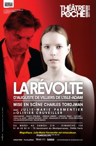 Il y a une bonne dizaine d’années, on avait été éblouie par La Révolte, texte peu connu de Villiers de l’Isle Adam, alors mis en scène sur le splendide plateau de l’Athénée. L’espace était immense, suffisamment pour ouvrir sur les envies d’ailleurs d’Elizabeth, le personnage féminin, et en même temps le cadre était étroit, assez pour suggérer qu’elle étouffait dans son foyer. Il y a quelques années aussi on avait été très émue par la douceur butée de Julie-Marie Parmentier en Petite Catherine de Heilbronn, et on était bien sûre qu’elle saurait triompher dans ce nouveau personnage décrit par son mari comme une « petite barre de fer ».