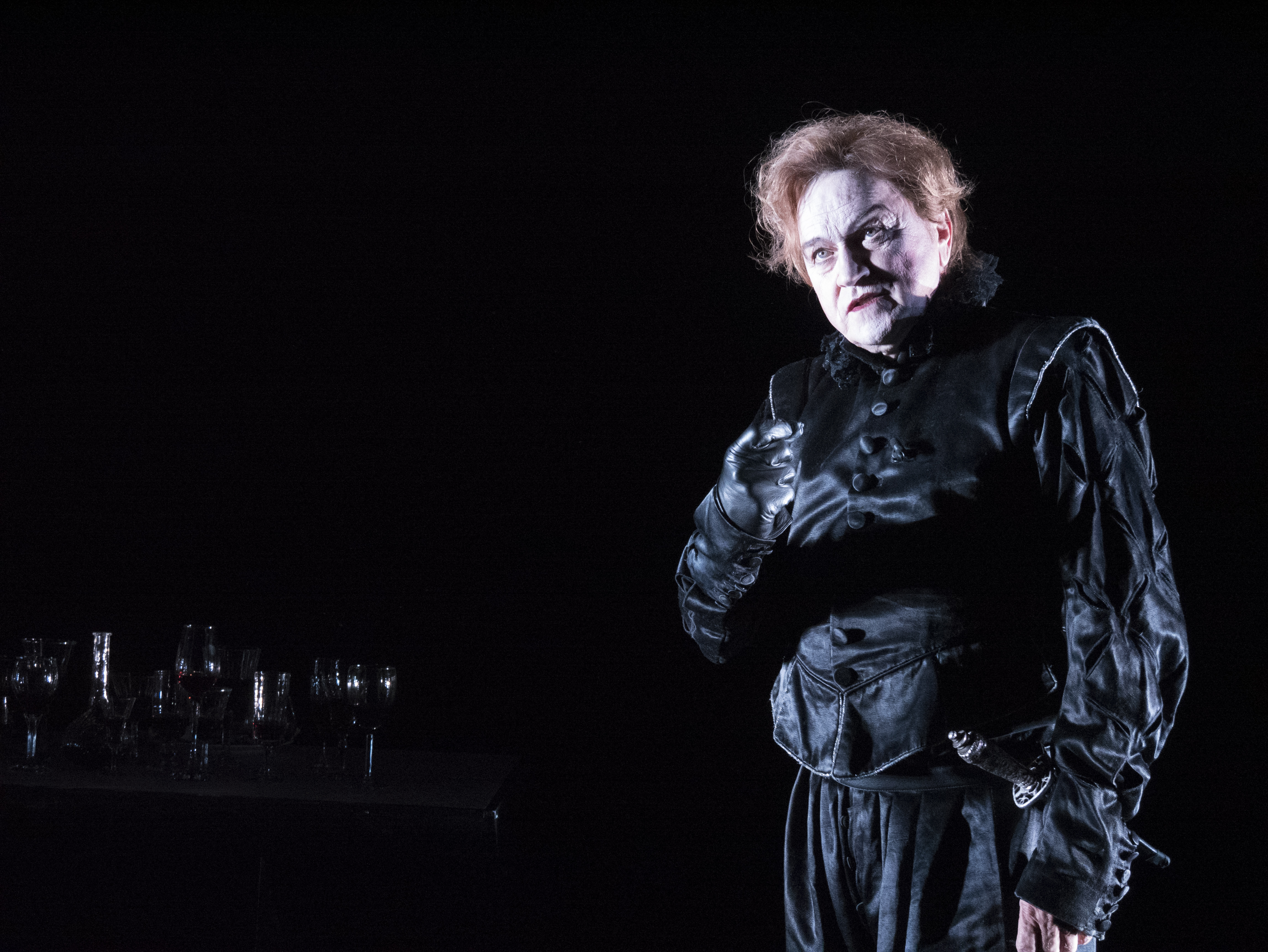 Une heure de visions hallucinées, une heure de cauchemar poisseux et funèbre, une heure dans la tête folle de Richard III. Carmelo Bene pour l’adaptation première, Georges Lavaudant pour la trahison frondeuse de cette adaptation et la mise en scène, Ariel Garcia-Valdès pour un duc de Gloucester d’anthologie. Carmelo Bene et Georges Lavaudant ont distillé cette tragédie pour en extraire tout le suc amer, le venin épais. La dernière nuit d’un roi avant la bataille qui le verra tomber de cheval et de son trône. Une nuit fatale où Richard le boiteux, le mal aimé, réécrit son histoire, rejoue sa vie, dans une vertigineuse mise en scène et réinvention de soi, aliénée et obsessionnelle. Fragments épars, éclatés, mis en abyme, rassemblés et cousu main, pour un dernier banquet funèbre et désormais sans convive, rien que des verres à demi-plein, à moitié vide, des fantômes. Superbe et glaçante scénographie spectrale et dépouillée de tout. Georges Lavaudant invente des scènes entre chien et loup, pleines de bruits étouffés et de fureurs glacées, de dialogues chuchotés, traversées de fulgurances brutales, d’une beauté rêche et prégnante. Scènes coagulées les unes aux autres, de la tragédie, de cette fresque ne restent que lambeaux, souvenirs déchirés, incomplets, racontés par ellipse dans la fièvre d’un cerveau exalté par son destin bientôt achevé. Georges Lavaudant joue des contrastes. Images stupéfiantes à vrai dire, pleines de poésie baroque et surréaliste, ce qui peut être la même chose, et puis soudain austères, d’une sécheresse âpre et coupante. La réalité ne cesse de se diluer et de se recomposer dans les méandres d’une pensée devenue aveugle et folle. C’est cette pensée-là, déliée, chaotique parfois, que met en scène avec bonheur Georges Lavaudant. Une pensée qui substitue à la réalité devenue simple reflet lointain d’un monde aboli la sienne propre, son délire. Et le théâtre pour révélateur. Reines folles et automates, pantins pour danses mécaniques, poupées soudain désarticulées, secouées de larmes ravalées, de dégoût craché, séduites comme et pour une ultime mise à mort. C’est autour des figures féminines que s’articulent aussi la folie et la prise de pouvoir de Richard III. Marguerite sa mère, la reine Elisabeth et Lady Anne. Folles de douleur, de chagrin, de rage. Enjeu, témoins et victimes lucides et impuissantes d’un pouvoir sanglant usurpé, d’un monstre. Il y a quarante ans, c’était hier, Ariel Garcia-Valdès créait ce rôle. Il le reprend aujourd’hui. Il y est prodigieux. Lui aussi a distillé son rôle, n’en donnant que la quintessence absolue, celle du mal, sans effet, sans éclat ou si peu. Un rictus pour sourire et la peur glace le plateau et la salle. Une scène, une seule pour exemple, petite scène presque banale d’ivresse ou Richard III demande des fraises, scène répétée en boucle mais avec d’infimes variations, donne toute la mesure de ce comédien. Une leçon de théâtre.