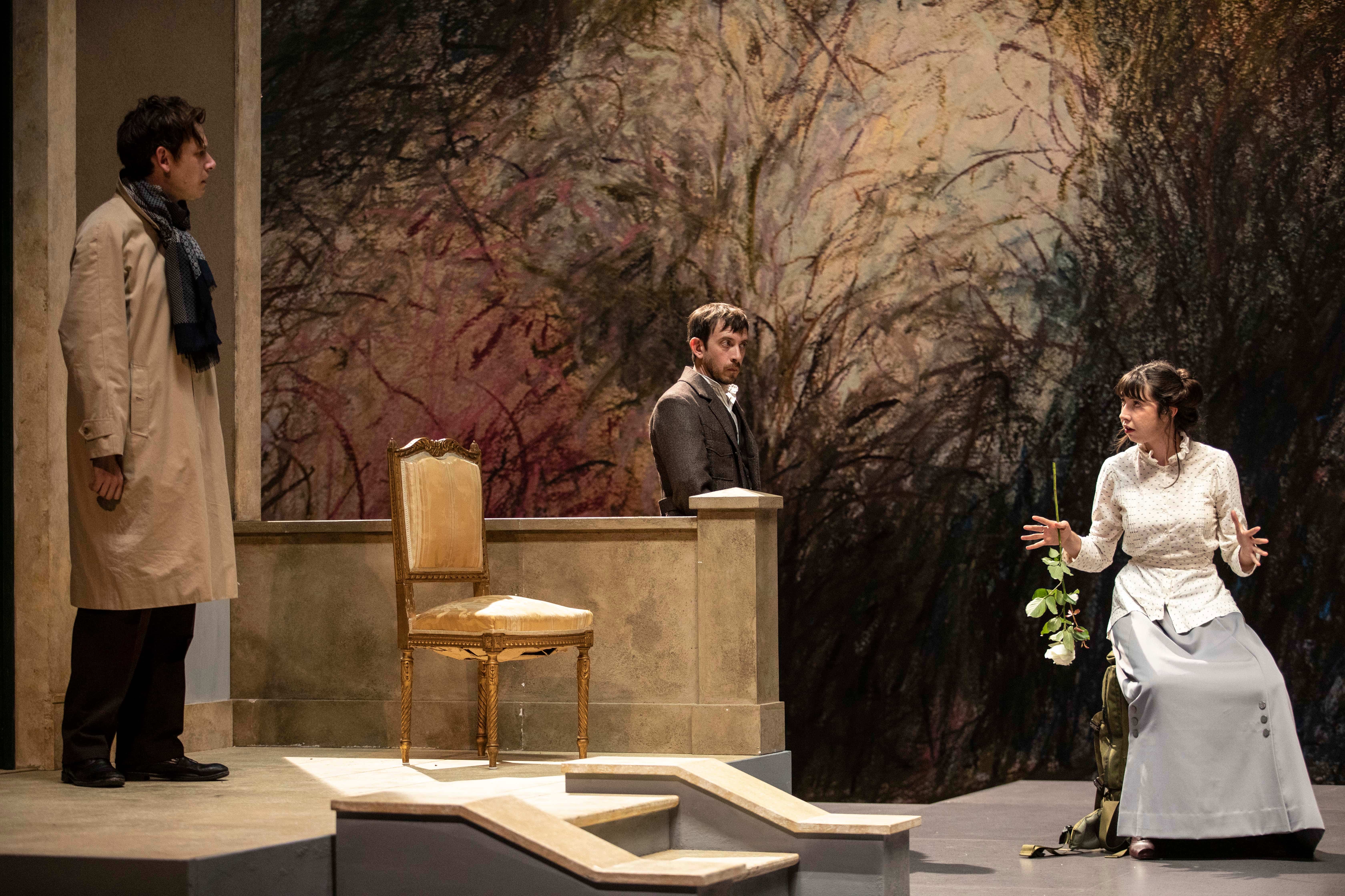 Il fallait bien pour exprimer ces mouvements du cœur infimes et délicats des comédiens virtuoses. Georgia Scalliet donne là une grande composition, une de plus, offrant à la marquise et dans la confiance accordée au verbe, au silence aussi, de subtiles, délicates et troublantes variations, une rare profondeur dans le trouble qui la voit se débattre et se défendre d’un amour qui s’impose à elle. L’incroyable Suzanne De Baecque, Lisette, épatante, aux inflexions du corps unique, regardons ses mains !, une façon étonnante de se tenir physiquement là, bien à elle, une façon de dire aussi, dépoussiérant en une scène, dès sa première apparition, la convention du genre. Une révélation. Pierre-François Garel, chevalier dérouté par ses propres sentiments, au risque de la chute est d’une justesse sans faille. Thomas Blanchard, Lubin, le corps bien planté, tout de gouaille et de liberté frondeuse, est lui aussi dans une vérité confondante. Rodolphe Congé, le pédant et pique assiette Hortensius, évite avec bonheur le ridicule et la caricature. Et Alexandre Ruby, le Comte, d’une beauté rigide, blessé et digne malgré l’échec amoureux, aristocratique jusqu’au bout. Heureuse distribution, homogène, dirigée au cordeau, pour une création qui nous révèle Marivaux et sa grande finesse, dépouillé enfin de tout marivaudage, ce cliché devenu ici bien obsolète.
