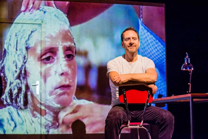 25 ans de psychanalyse, une flopée de séances d’addicts anonymes et des m2 de livres de pensée positive plus tard, et désormais une légère calvitie (on peine à la voir), le voici donc sur le plateau, le Riton en question, pour le deuxième opus de son autobiographie scénique. Rien à voir avec la roublardise pateline et bourgeoise d’un Caubère : il est Belge et a tourné avec Blier, pas avec Mnouchkine.