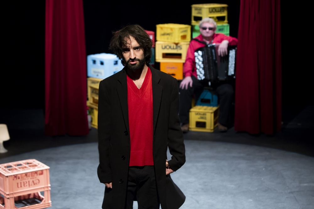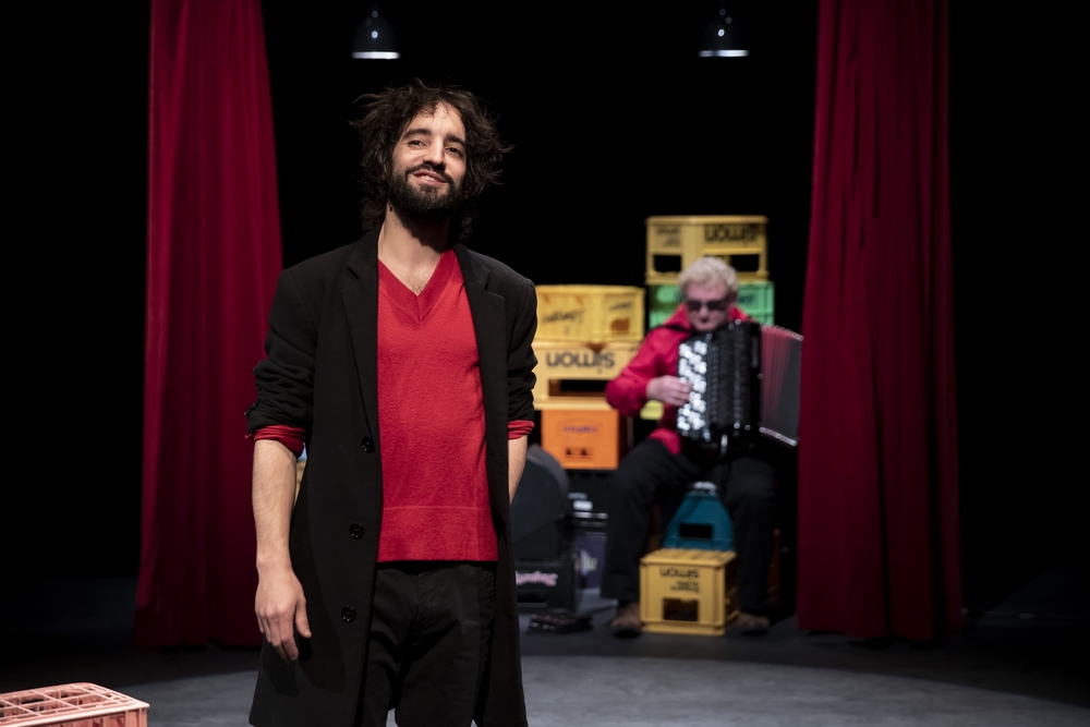 Ascanio Celestini, merci ! Voilà une petite merveille de sensibilité (attention cela ne veut pas dire sensiblerie !), de lucidité abrasive, d’une humanité bouleversante. Indispensable. Et si drôle, si caustique alors même que votre cœur fait crac-crac et boum-reboum d’entendre le monde comme il va, c’est-à-dire pas très bien, aperçu de la fenêtre d’un bar où le petit jaune et le péket coulent à flot. Le monde d’en bas, des petits, des obscurs, des sans-grades… Le prolétariat d’aujourd’hui, d’hier et de demain. Et derrière la vitre de ce bistrot, il y a la vieille et l’autre vieille au cerveau dérangé, le manutentionnaire et le clochard. Il y a la prostituée. Il y a les grévistes exténués et les flics enragés. Il y a les africains, du moins ceux qui ont survécus au naufrage de leur embarcation. Il y a Gandhi et le Che. Il y a les saints et leurs miracles. Il y a Dieu et Stephen Hawking. Il y a Laïka qui n’est pas revenue d’avoir de si près touché les étoiles. C’était en 1957, le premier être dans l’espace. Il y a l’entrepôt et le supermarché. Il y a le bar et le trottoir. Il y a la violence et la solidarité. Et puis la voûte céleste qui s’affaisse, qu’une main ne suffit pas à arrêter comme elle n’arrêtera pas les flics qui bientôt vont frapper. Et le narrateur. Tiens, qui est-il donc celui-là ? On ne sait pas. Qu’importe. Entre Jésus et Karl-Marx, un pauvre diable sans doute, précaire parmi les précaires, accompagné de Pierre à l’accordéon, qui scande cette parole fleuve, ce poème, ce chant d’amour enivré aux laissés-pour-compte qui n’attendent plus un ruissellement qui sans aucun doute ne viendra jamais. C’est un portrait tendre et pourtant terrible mais jamais désespéré de cette classe déclassée, brisée, victime d’un capitalisme, d’un libéralisme qui les broie sans scrupule. Reste la solidarité, un peu. Le verbe d’Ascanio Celestini, héritier de Dario Fo et de Franca Rame, est ciselé et redoutable. Du théâtre-récit et une verve poétique et réaliste qui coule comme un torrent et tombe en cascade, vous inonde avec fracas. Et pour porter cette voix, celle de ceux qui n’en ont pas, David Murgia. Le verbe incarné, engagé. Entre slam et rap, monologue fiévreux et habité. Elocution véloce et nerveuse, présence magnétique et prégnante. Chaque portrait dessiné, esquissé, est un petit bijou de délicatesse. Sans rien faire ou presque, sans en rajouter et l’air de rien, la voix de ces exploités, de ces déclassés, de ces prolétaires, de ces vieilles, là sur ce plateau, parmi les caisses de bière empilées, se matérialise et bientôt tous ceux-là hantent les lieux, la parole enfin donnée et jamais reprise. Et puis il y a le colocataire, Pierre. Celui qui va au supermarché, l’accordéoniste qui ponctue cette fièvre intarissable. Cette voix off qui double Maurice Blanchy, le musicien, sépare les récits et fait le lien entre eux, c’est celle de Yolande Moreau. Que d’humanité bouleversante dans cette voix nue ponctuant la logorrhée de notre pilier de bar, ce bar dans lequel nous sommes désormais installés. Quelle idée surréaliste, imprévisible et juste ! Voilà. C’est une création dont on ne sort pas indemne, le cœur vrillé et le cerveau embué. Le théâtre c’est ça aussi un miroir tendu sur le monde, tel qu’il cahote, un engagement civique, politique. Le petit caillou dans la chaussure de la bien-pensance et de l’indifférence polie. Il est bon de ressortir boiteux de ce théâtre-là.
