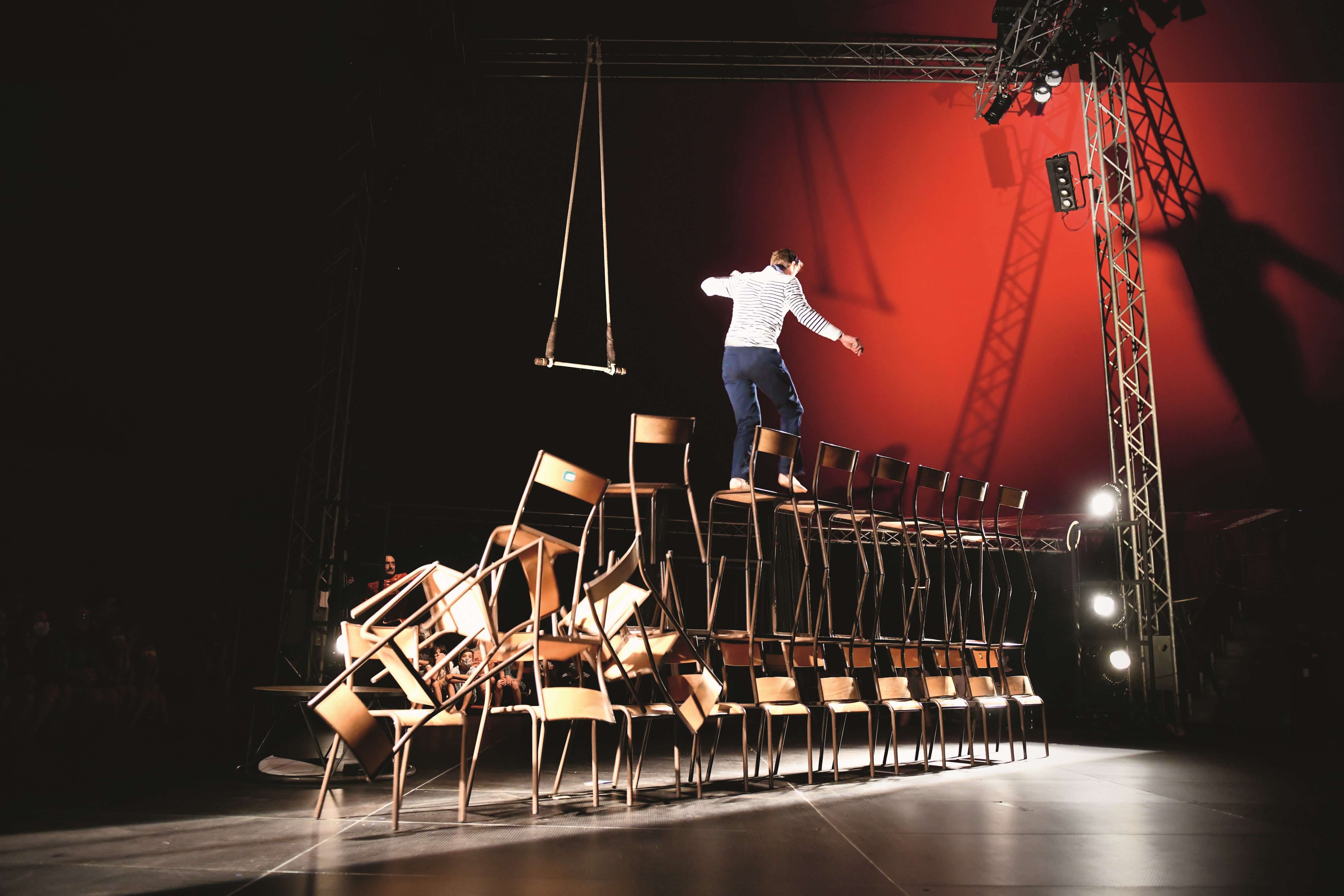 Cette idée du « plus, plus, toujours plus ; plus loin, plus haut, plus fort » est passée au crible et illustre autant une propension à la folie que cette volonté insatiable de repousser ses propres limites. Et nous retiendrons particulièrement la dernière partie du spectacle, summum de ce dépassement de soi et de ses peurs et même de la gravité où − sans tout dévoiler − il s’agit pour Lucho Smit de grimper toujours plus haut, en empilant ces fameuses chaises d’école, sous les yeux admiratifs des spectateurs dont les cœurs, le temps d’un spectacle, auront battus à l’unisson, et c’est déjà un beau moment de vie !