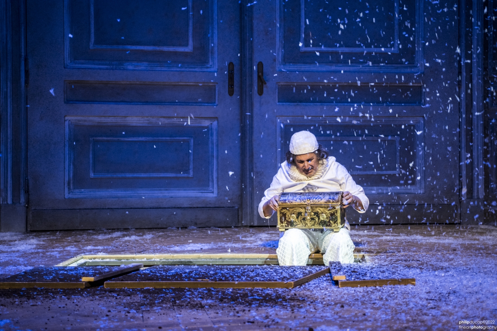 Harpagon est donc Michel Boujenah, qui tient à bout de bras la pièce, pendant près de 2 h 15. Véritable partenaire, il charrie toute la puissance comique de la pièce en renvoyant excellemment la réplique à ses pairs. Il prête son corps de noble histrion à son personnage. Arlequin fatigué qu’on habille de blanc, prêt à se recoucher dans sa tombe, avec un dernier salut de la main, seul amoureux d’une cassette ingrate et volage ; mais prêt aussi à revenir d’entre les morts pour les derniers saluts. Il y a du Totò, du Fellini dans cet Avare-là. Ou un goût de Jacques Charron, un vrai théâtre français populaire qui aurait plu et à Musset et à Margot.