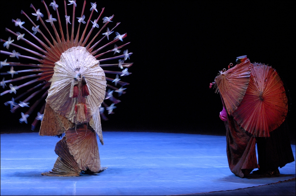 Elle prend la lumière, a plus d’un tour dans son sac, la caméléone transformiste. Cousus décousus, surfilés, enfilés, la princesse se pare de multiples costumes, les retournent, les déplient pour créer un bestiaire imaginaire, elle joue d’un artisanat plastique délicat et de transformations en cascades comme dans les rêves. Dragon, tortue, cheval, chimères, crocodiles, des bêtes improbables apparaissent quand elle se contorsionne et change de déguisements à vue. On n’oubliera pas le martyre d’une gorgone avec les plis d’un ruban rouge qui s’écoule comme du sang, ou encore cette armure à musique ornée de verres, panier à salade, coupe à fruits et casseroles. Victoria, revêtue de sa batterie de cuisine, tintinnabule avec entrain.