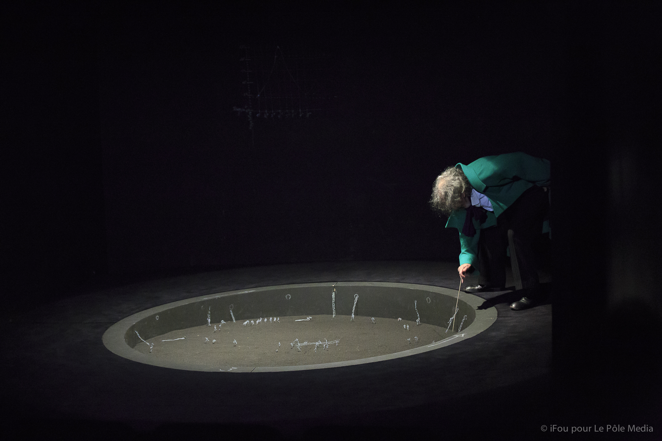C’est un peuple, petit peuple, de « chercheurs » qui (sur)vit au fond d’ »un cylindre surbaissé ayant cinquante mètres de pourtour et seize de haut pour l’harmonie ». Un cylindre sans issue, ou ignorée, ou possible, contre lequel sont posées des échelles, tout en haut sont des niches, un cylindre clôt d’un plafond. Il y a là des « grimpeurs », des « vaincus », des « sédentaires ». C’est un texte de Beckett, énigmatique, étrange. Pas forcément le plus connu. Il fallait donc bien que Serge Merlin s’y penche. Une évidence. Ce n’est pas la première fois qu’il traverse ce texte. C’est un long compagnonnage. Il nous offre là quelque chose d’inouï. La quintessence de l’incarnation. Il ne dit pas ce texte, il le vit, il en devient l’écriture incarnée. Incroyable représentation sur un fil tendu, raide. Serge Merlin, en vieil auguste scientifique, conférencier habité de son sujet, nous offre un grand moment, rare, d’interprétation. Et plus encore. Voix, corps, tout est service de l’auteur et de la langue. Tout vibre, ponctue, module, souligne. Il n’en joue ni n’en abuse. C’est tout simplement renversant de naturel. Evidence toujours. Ce vieux fou, ce docteur à la redingote verte bien trop large, au col de chemise s’échappant, bourré de tics, ce clown beckettien en diable, de cette énigme, de ce texte étrange, hermétique, il extrait une vérité qui laisse pantois. Effet augmenté par la proximité qu’offre la petite salle des déchargeurs. La présence de Serge Merlin en devient inquiétante tant il est habité, hanté, foudroyé par ce texte, cette langue qui semble tout entier le posséder. Une langue qu’il dévoile, révèle, exprime dans toute sa complexité et sa densité, son mystère. Car ce n’est pas le sujet en lui même qui compte, ce petit peuple au destin absurde, aussi étrange soit-il, ni même ce personnage loufoque, créé avec grande justesse, mais bien la langue, la parole singulière de Beckett. Quand le silence se fait, parfois, c’est un visage halluciné et grave qui se penche vers nous. Et ces silences là, accompagnés d’un regard tourné bien au-delà de la salle, vers des gouffres insondables, ont le poids précieux d’une vie consacré à une quête. La quête de Serge Merlin qui de Beckett à Thomas Bernhard inlassablement et pour notre bonheur fouaille les arcanes d’une langue pour en extraire toute la charge d’humanité, toute sa vérité. Alain Françon le connait bien qui l’accompagne ici. Sa mise en scène a le don généreux de s’oublier pour s’offrir tout entière à ce comédien absolu. Magnifique complémentarité faite de confiance. Nous sortons de la petite salle des déchargeurs estomaqués, certains d’avoir vécu un moment plus que rare, d’avoir tutoyé dans la plus grande intimité ce que le théâtre peut offrir de plus pur, une vérité et un engagement absolu au service de la langue et d’un auteur.