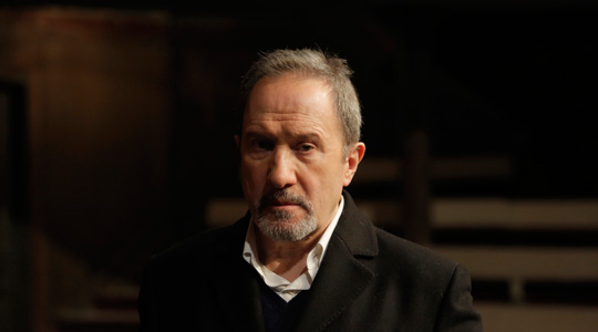 Le merveilleux plateau des Bouffes du Nord est nu, et sur celui-ci apparaît dans son long manteau noir un homme au visage tourné vers le sol. Il lit une à une les épitaphes des tombes qui surgissent sous ses yeux et qui tantôt révèlent des volontés humaines, tantôt des volontés animales. Tout ce décor dans lequel le spectateur est plongé, est bien sûr uniquement le fruit de l’imaginaire qu’André Marcon nous donne à voir grâce à son interprétation. Réflexion sur le sens et le non-sens de l’existence, sur ce que l’homme en tant qu’être de la Création est le seul à détenir : le langage. Un langage prolixe pour dire ce qu’il ne dit plus, voilà ce que Novarina cherche à faire ressentir au spectateur. André Marcon interprète avec sensibilité, sincérité et humour ce texte d’une redoutable difficulté. Le seul bémol que l’on pourrait émettre concerne la diction, qui se trouve toujours sous le signe d’un tempo « prestissimo », empêchant ainsi le texte de respirer et perdant par moment l’auditoire. C’est au moment où André Marcon pousse la chansonnette que le texte prend toute sa plénitude, car le temps de respiration du comédien nécessairement plus long et plus fréquent pour chanter ralentit le rythme de la parole et sculpte ainsi la phrase. Le rapport à Dieu, le rapport à la mort et à la naissance sont ici interrogés avec un humour cynique et grinçant. L’homme s’adresse aussi bien aux animaux qu’à Dieu, et dans les deux cas ses questions restent sans réponse ; il crie, vocifère, tempête, mais seule sa voix retentit. Autrui est perçu comme une hyperbole terrifiante de soi-même, et la peur de l’homme face à l’existence s’exprime par l’évocation récurrente du « trou ». Ce « trou » par lequel l’âme est, et qui indique déjà l’obscurité dans laquelle nous nous trouvons lorsqu’il s’agit de penser la mort.