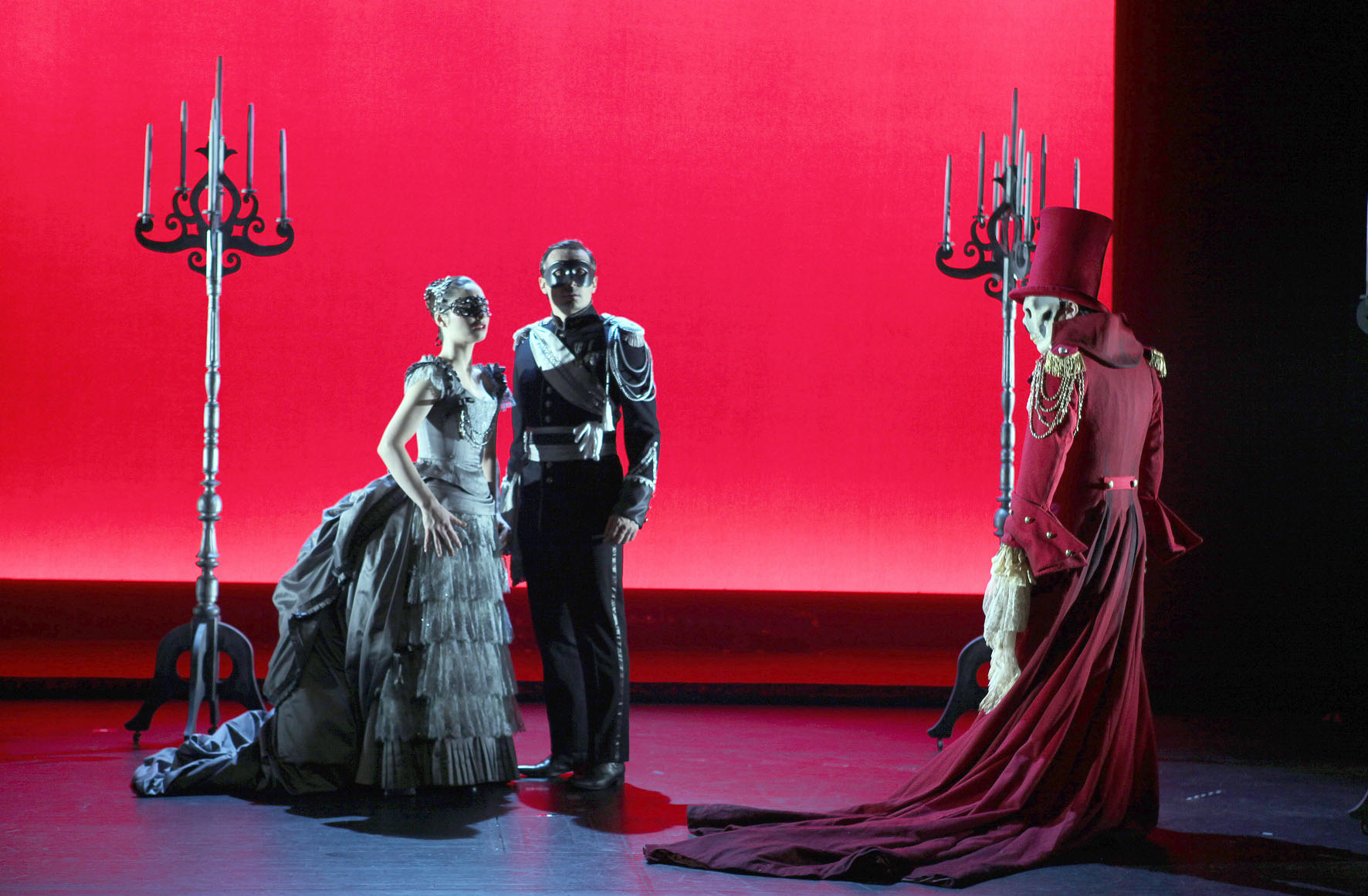 Cependant une mise en lumière percutante est loin de nous laisser de marbre. La scénographie, aussi simple soit-elle, capte immédiatement le spectateur dans une atmosphère de secret et de lourds mystères. On se promène sur les toits, on s’aventure vers le lac mystérieux sous les fondations, On observe les loges et contemplons la grande scène, parfois de face, parfois de côté, le tout amené habilement par un rideau transparent destiné à doubler l’espace scénique.