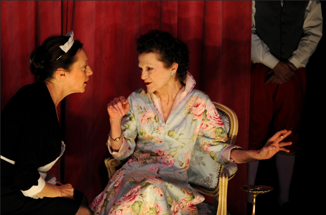 On ne peut pas nier que le jeu est là, les acteurs savent nous tenir en suspens le long de la pièce alors que celle-ci nous est plus que familière à tous… Et même pour ceux qui ne l’ont ni vue ni lue, l’intrigue est toute là dès le début : une femme, de haut rang, doit se marier à un homme, de haut rang. Or, ce sont des inconnus. Pour faire leur choix, apprendre à se connaître, que vont-ils donc faire ? Ils vont se faire passer pour ce qu’ils ne sont pas. Et ce, chacun de leur côté : ils ont le même rang, et les mêmes idées, cela va de soi. Ainsi chacun d’entre eux joue le valet / la soubrette et observe. Ce parfait nœud, mathématique, symétrique, nous indique déjà une autre symétrie : chacun se reconnaît sans le savoir, et c’est inconsciemment qu’ils retombent sur leurs rails parallèles bien tracés. Et oui, le beau aime la belle et réciproquement, le vulgaire aime la grosse bonne-femme et réciproquement. Et voilà, le tour est joué ! On n’échappe pas à sa naissance. Mais Raskine ne s’arrête pas là, parce qu’il faut l’admettre, on connaît déjà la chanson. La reproduction de Fragonard, « Le verrou », l’indique : si on la laisse moisir sur un coin de la scène c’est parce qu’on l’a tous déjà vue. Alors Raskine restitue l’intrigue dans une autre tranche de vie : qu’est-ce que ça donne si on fait la même expérience avec des gens qui connaissent aussi le piège ? Qu’obtient-on lorsque des acteurs chevronnés prennent place ? Une pièce bien jouée. Il y a de beaux moments sur scène, et la mise en scène est surprenante, dynamique (les acteurs entrent de tous côtés ce qui n’est pas prévu, le père espionne à travers une ouverture cachée par un cadre). On évite le mou, le niais. L’audace du renversement consiste surtout à accentuer sur la cruauté, la froideur scientifique d’une expérience sur êtres humains volontaires. C’est un visage de la pièce qui restait en effet peu montré.