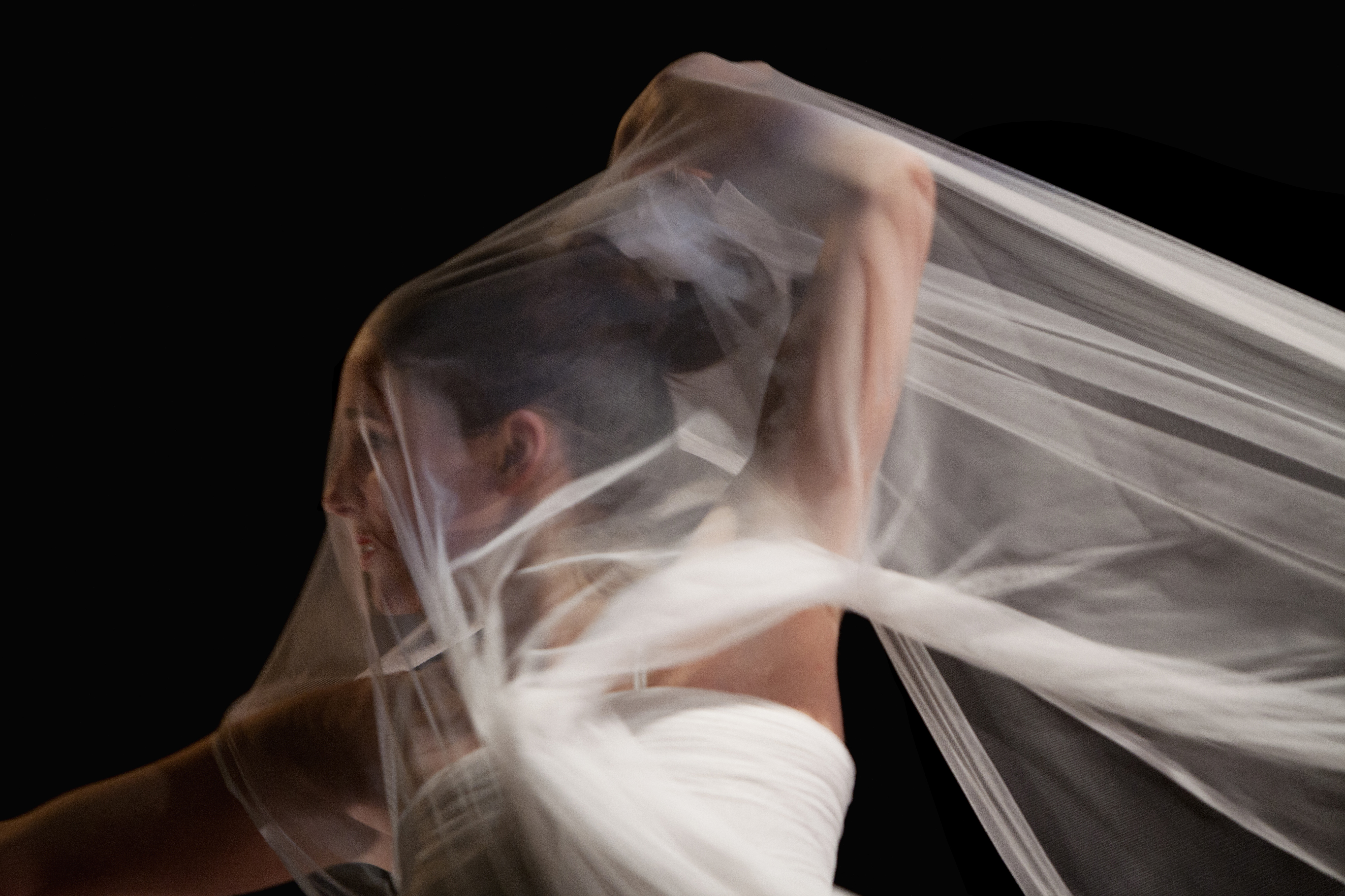 On (les neuf comédiens-chanteurs-musiciens) s’agglutine en mêlée de rugby, on se disperse, on se détache par couples. On s’attrape aux chevilles, on se tire par les pieds, on se retient à un pan de voile. On dirait qu’on ne veut pas se quitter. On emmaillote son prochain avec de la gaze.