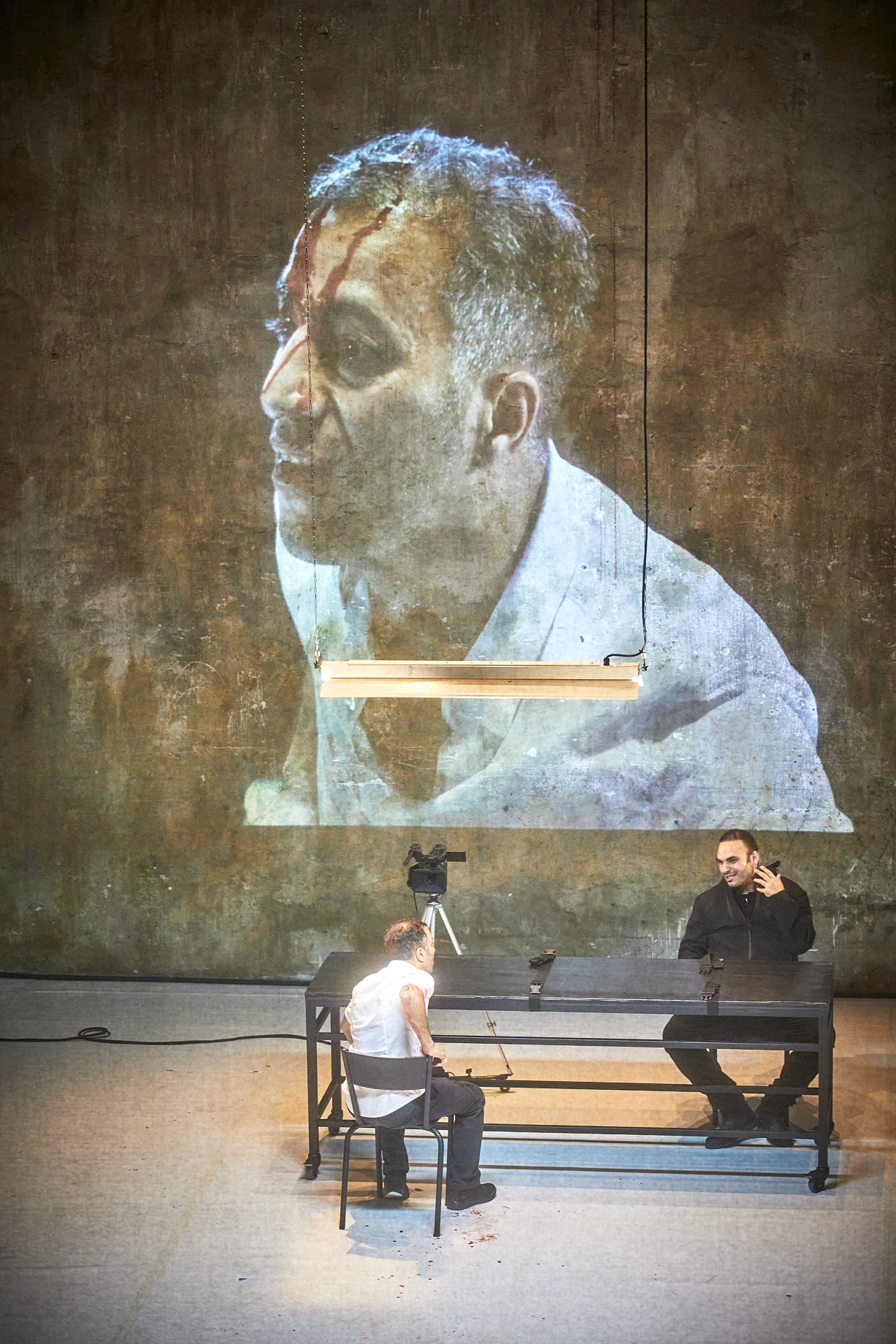 Mais l’essentiel n’est pas là. Si l’auteur-metteur en scène constate dans sa note d’intention que le terrorisme pose un problème de définition, il ne prétend pas pour autant faire un travail sur le terrorisme en tant que tel, mais plutôt s’interroger sur la violence, qui n’est pas seulement la violence terroriste, en s’inspirant du concept de banalité du mal de Arendt. Il n’est pas certain que Le Musée puisse donner une illustration de ce concept. En revanche, il nous semble, même si Bashar Murkus ne le revendique pas, qu’il reprend le flambeau des intellectuels abolitionnistes, et en particulier Camus qui est de ceux qui a le mieux théorisé la violence d’Etat dans ses Réflexions sur la guillotine, puis approfondi avec Aerthur Koestler. Comment admettre le meurtre légal ? Comment un Etat qui exerce un droit de mort et le met en scène, peut-il prétendre, en s’appuyant sur la loi, en se revendiquant comme Etat de droit, se placer au-dessus de l’individu criminel ?