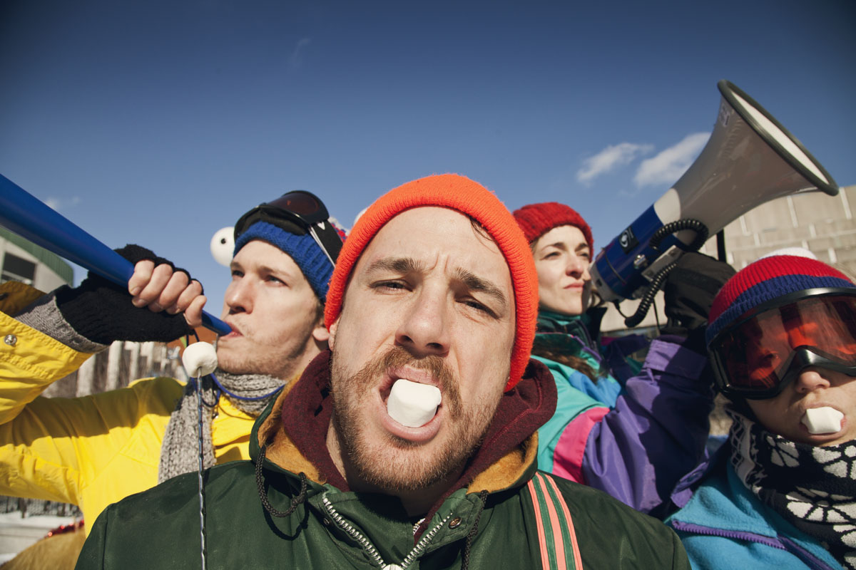 Suite à cela, les sept comédiens nous font rentrer avec chaleur et collégialité dans la salle, jusqu’à ce que les chiffres de la billetterie tombent. Après une révision budgétaire minutieuse, où ils nous dévoilent les coulisses de la production et de la billetterie, ces derniers nous expliquent qu’avec l’argent amassé ils ne pourront payer que trois comédiens au juste prix et donc ne pas pouvoir jouer le spectacle dans son entièreté. Afin d’être le plus égalitaire, et d’élire les trois interprètes qui pourront ce soir-même recevoir leur salaire, ils décident de s’isoler devant une caméra, et ont vingt secondes montre en main pour nous convaincre de les choisir par le biais d’une vidéo qui nous est retransmise en direct. Il est alors intéressant de se pencher sur les multiples façons qu’ils ont de « draguer » leur électorat, nous rappelant avec amertume les stratégies politiques et les ébats de cette année en France. Certains utiliseront l’arme de l’humour, d’autres de la pitié, ou encore se concentreront sur une communauté bien spécifique de spectateur afin d’obtenir leur voix. Vient ensuite le moment du vote par texto, ou nous aurons deux minutes afin d’élire les grands gagnants qui auront l’honneur de rester sur la scène. Une fois le verdict tombé, les autres quitteront le plateau, mais n’auront pas dit leur dernier mot. Très vite, à l’aide de cette même caméra jouant avec le hors champs, nous comprenons que les comédiens ont installé un piquet de grève dans la rue devant le théâtre et, haranguant les passants festivaliers, ne quitteront pas les lieux sans protester de vive voix.