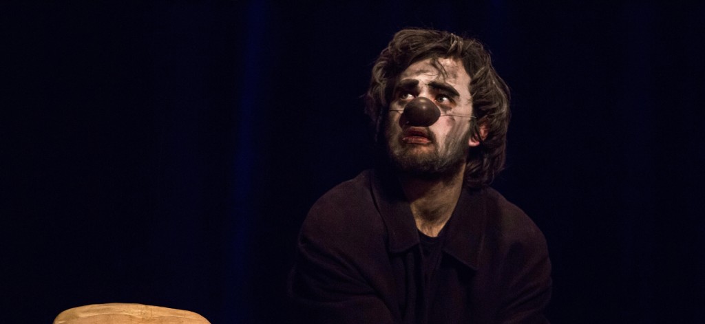 Ce qu’il faut souligner d’abord, c’est le grand écart entre la technique parfaite qui fait rire le public aux éclats, faisant pousser des  »oh ! » et des  »ah ! » à chaque glissade, à chaque chute, et le recul que prend ce clown par rapport à son art. Son nez de clown est gris, il nous imite quand on rit bêtement, il teste notre imagination. Il nous regarde droit dans les yeux et nous dit  »qu’est-ce que vous voulez que je fasse ? Allez, dites !  ». Il se fait soudain bête de foire, et nous, éternels gamins au cirque, on demande une chanson, une blague, un tour de magie. C’est magique, donc, épatant, rodé. On est dans un vrai spectacle d’illusion, dans des tours délicats, en même temps qu’il se dégage de ce pantin condamné à toujours être marrant, même quand il faillit, un gouffre tragique.