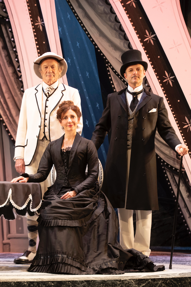 La recette consistant à moderniser les classiques est suivie par Ladislas Chollat qui sait parfaitement prendre de la distance tout en étant parfaitement fidèle (un comble chez Feydeau!). Le metteur en scène a décidé que même le décor aurait de l’humour et il nous évite la lourdeur des tentures vertes, des fauteuils en cuir marron et des tapisseries surchargées en recréant un cadre en noir et blanc, mobile, imitation très moqueuse de l’esprit du XIXème siècle. Dans cet ensemble moderne, l’apport musical, signé Frédéric Norel, rajoute à la tonicité ambiante. L’on parle au subjonctif, l’on porte des tenues d’époque et l’on joue vrai avec toute l’énergie qui convient, sans se prendre au sérieux (grâce notamment à quelques délicieux tics de comportement) en donnant au spectateur l’agréable impression que l’on joue pour et avec lui. C’est dire que la symbiose est parfaite d’autant que la distribution est sans failles. Valérie Karsenti donne au rôle féminin principal, jamais facile à endosser dans les vaudevilles, un relief et une sensibilité remarquables. Pierre François Martin-Laval qui joue idéalement le charmant cynique plein de vie, incarne un redoutable Ribadier. Patrick Chesnais vient compléter ce trio redoutable. Tout en douceur, il met son talent au service d’un Thommereux frappé d’une obsession presque enfantine pour cette femme qu’il convoite en vain depuis toujours. Benoît Tachoires en mari cocu, Elsa Rozenknop en servante témoin de la tempête conjugale et Emmanuel Vérité en chauffeur coureur de jupons complètent avec bonheur cette belle distribution. Tous contribuent à nous faire adhérer, sans l’ombre d’une hésitation, au système Ribadier.