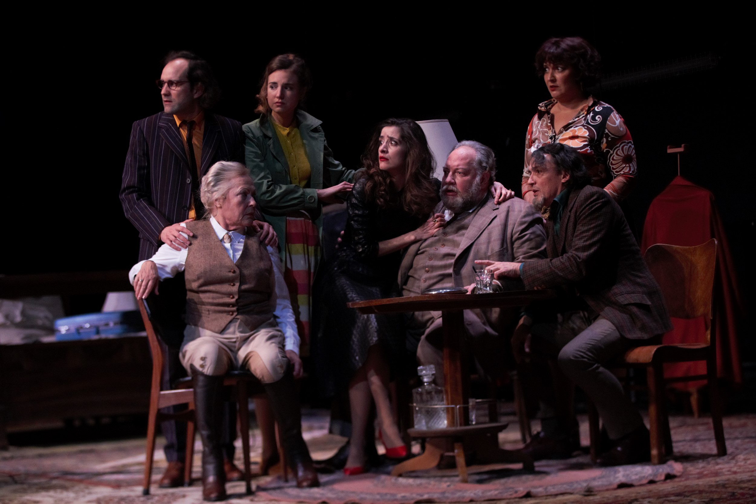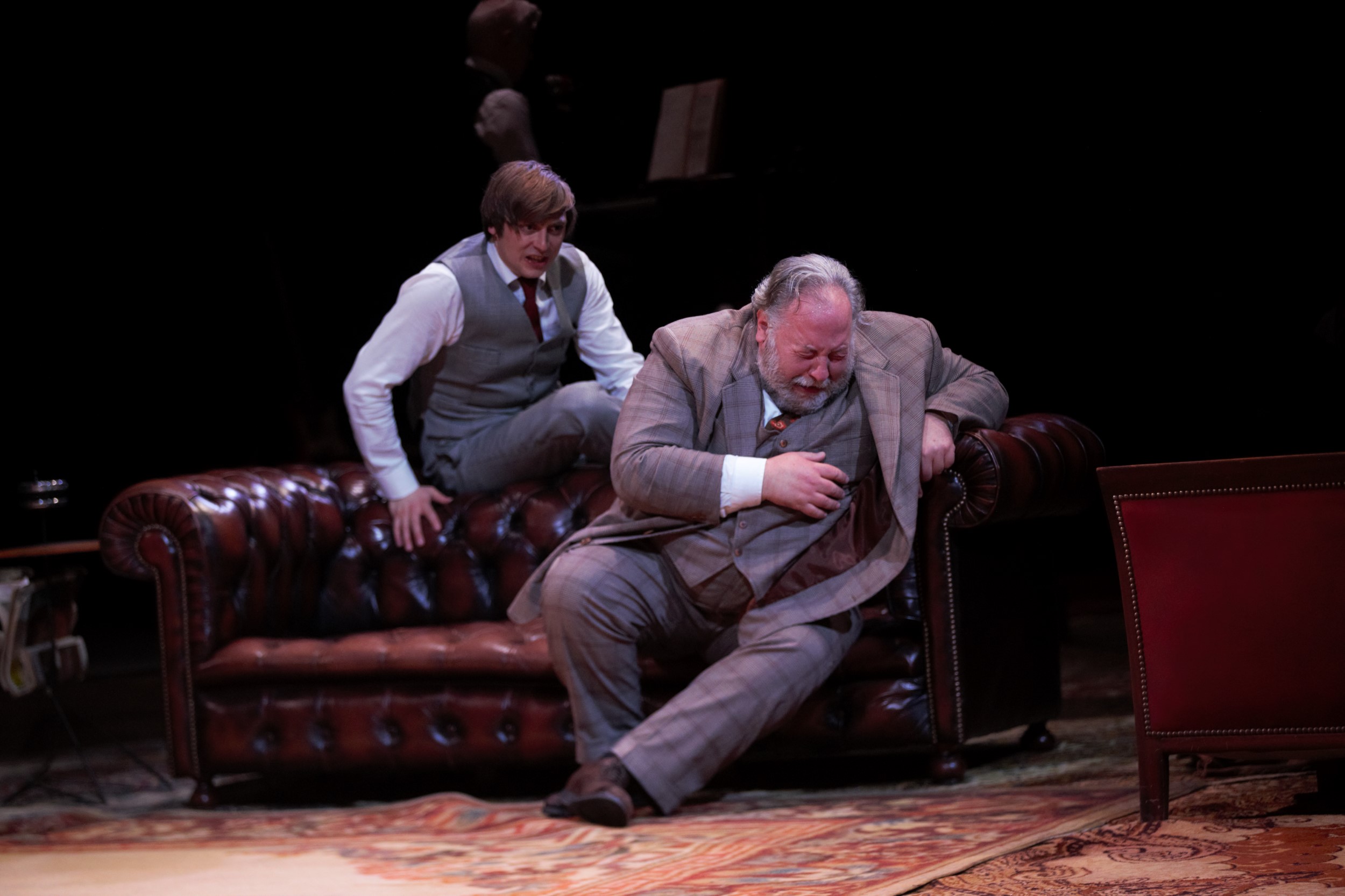 Le décor ne suscite pas totalement l’adhésion non plus, autant certainement pour l’impression d’accumulation de meubles qui ne laisse aucun répit à l’œil et à l’imagination, que de la configuration du théâtre de Montansier. Des premiers rangs, on peut à peine deviner que la grande table se transforme en billard (et on ne saisit pas non plus totalement la symbolique recherchée), et à peine voir parfois certains comédiens.