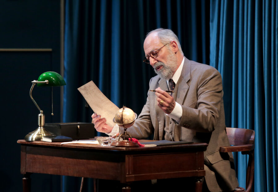 Katia Ghanty incarne une Anne énergique et qui provoque l’empathie ; Sam Karmann est un Freud pas toujours convaincant (oubliant par exemple de temps en temps la démarche claudicante et difficile qui est surjouée au début, voire même trottinant sans sa canne dans d’autres passages) ; Maxime de Toledo campe un nazi un peu caricatural ; Franck Desmedt interprète le visiteur nocturne attendu, ironique, enjoué, poussant gentiment Freud dans ses retranchements. Reflet de son inconscient ou pure révélation divine ? La réponse est laissée suffisamment ouverte pour que chaque spectateur suive ou non Eric-Emmanuel Schmitt vers la seconde option. Le texte écrit en 1993 reprend les thèmes chers à l’auteur : le courage, l’amour de la vie, la foi.