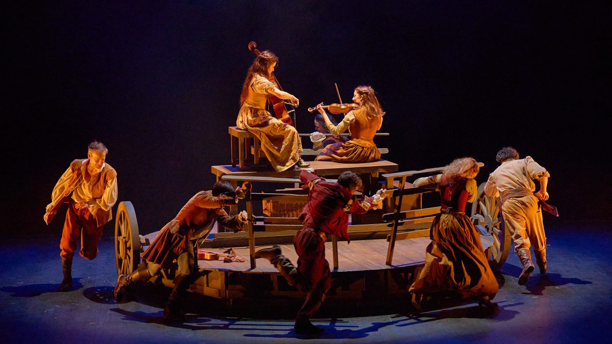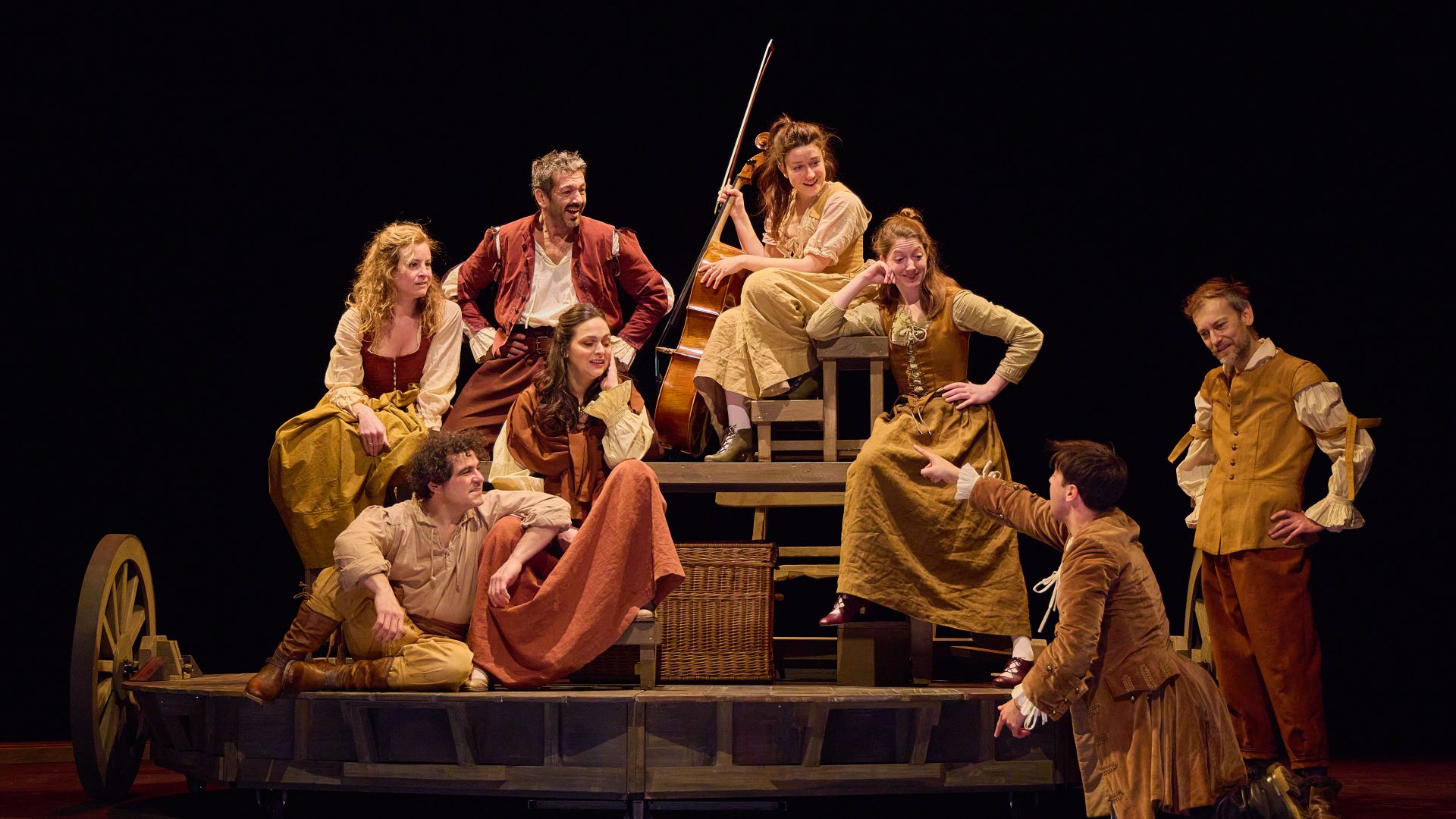 Loin d’être un biopic sur l’auteur et le comédien, Le Voyage de Molière sonne comme un véritable hymne à l’homme de théâtre. Dans une fantaisie où se glissent imagination et vérités, où s’entremêlent le style de Molière et des phrases tirées de ses pièces, Pierre-Olivier Scotto et Jean-Philippe Daguerre parviennent à nous faire vivre une histoire grisante, au son d’un violoncelle virevoltant, au rythme de comédiens survoltés, et dans un décor tournoyant.