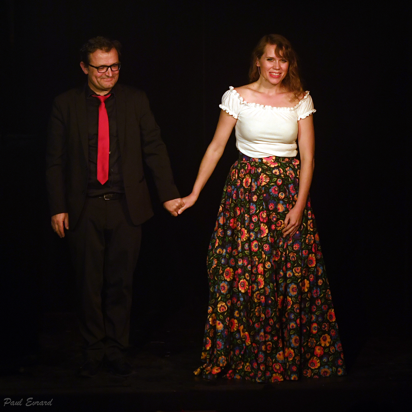 Ainsi cette scénographie de Cabaret fait figure de poudre aux yeux de même que la mise en scène qui met la chanteuse dans un rôle de Vamp : présence fantomatique et exacerbée par un effet dramatique surfait. Les lumières nous ramènent à une ambiance de fête foraine, contradictoire avec l’authenticité pittoresque de Varsovie. Toute la mise en scène est tirée à son extrême – surplus d’accessoires et de costumes qui font office de fausse béquille pour la chanteuse – si bien qu’on finit par se perdre dans ce qui se rapproche d’un hybride entre un show à Las Vegas et un spectacle jeune public (de par cette poésie décortiquée au préalable afin d’être mieux ingurgitée). Nous pouvons cependant témoigner de la technique vocale – bilingue franco-polonaise – d’Adamusinska et sa complicité avec le public.