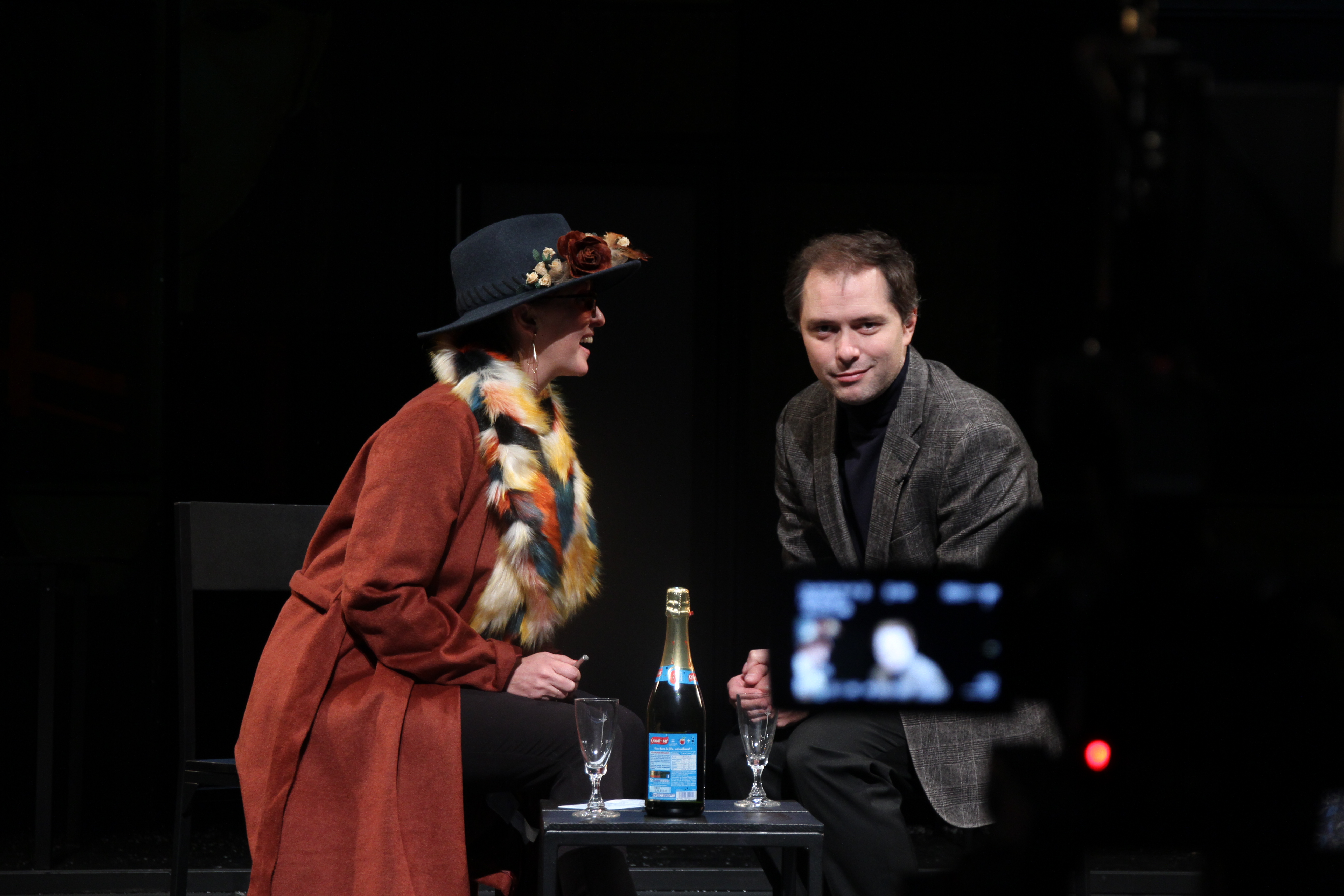 Le spectacle prend alors la forme d’une mise en abyme : un tournage de film sur la vie de ce père. L’image de la poupée gigogne n’est pas loin, pour ce père d’origine russe d’ailleurs. La pièce ouvre de multiples tiroirs, oscille entre flash-back, visions fantasmagoriques et vicissitudes du tournage. Et même si le spectateur est vite accroché par l’histoire de ce père à la vie certes rocambolesque, interprété par le charismatique Thibault Perrenoud, on finit par se perdre un peu dans ce dédale foisonnant. Peut-être Igor Mendjisky en tentant de dévoiler la vérité tout en proposant une sorte de point de vue psychanalytique a-t-il voulu trop en dire au risque de longueurs, ou au trait parfois gros, comme cette récurrence de la tentative de tuer le père à l’aide d’un pistolet venu dont ne sait où. Ou bien peut-être en cherchant à universaliser une histoire intime a-t-il oublié une certaine limpidité du discours ? Bien sûr, on comprend la profondeur d’un tel héritage, mais sans doute l’écriture aurait mérité une simplicité supplémentaire, une efficacité que l’on retrouve habituellement dans la Compagnie des Sans Cou.