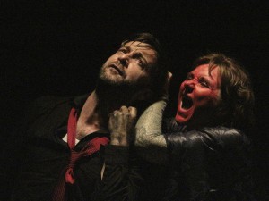 Car Mara – l’antique Médée, l’anti héroïne, la matricide, la sorcière – s’impose comme un venin empoisonné à son ancien amant, s’invite d’abord par les mots entre le nouveau couple, s’obstine à se rappeler à lui. Lettre après lettre, Mara s’entête, Marra attend son heure depuis 20 ans. Alors quand l’enveloppe s’ouvre c’est toute l’abomination qui s’échappe, se déverse. D’un coup les imprécations jaillissent en gros plan sur l’écran, l’image du sol au plafond d’une folle furieuse, ivre de rage, répand sa vindicte. Sous sa perruque peroxydée, il y a une guerrière, retentissante de désespoir qui le harangue sans relâche, il y a ce corps qui a porté la vie, qui est devenu objet de répulsion, que Pierre ne supporte plus, qu’il condamne férocement. Il y a cette blessure béante entre eux, cette sépulture, cette exécration. Mais celle qui incarne la continuité, la transmission, refuse la réprobation donne aux vivants d’autres morts. Sans le moindre repentir avoue l’enfant noyé, agite les spectres que l’on a livrés à la Gestapo, que l’on a lentement assassinés.