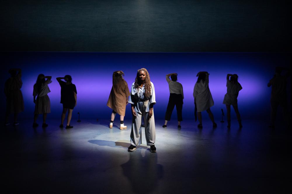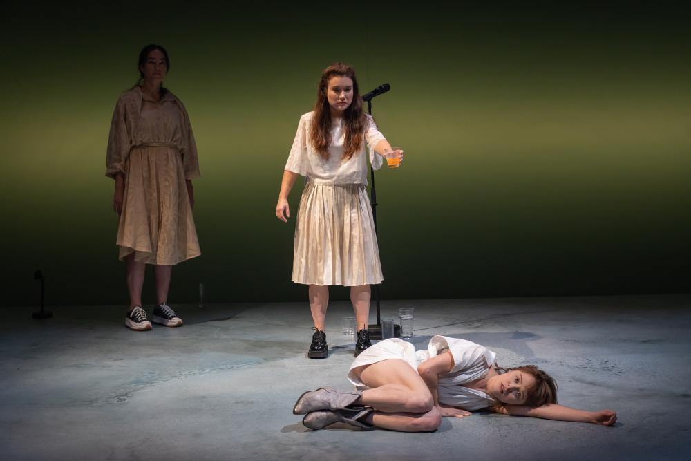 Mathilde, Anne, Rose, Charlotte, Lili, Manon, Dora, Elodie. Ce sont les filles, les femmes du Saint-Laurent. Il y a Martin, aussi. Et le Fleuve, le Saint-Laurent. De Coteau-du-Lac à Lourdes-de-Blanc-Sablon, du nord au sud, en passant par Québec, le fleuve charrie des cadavres, recrachés sur ses rives. Corps non identifiés découverts par ces femmes, cet homme, au hasard d’une marche, d’un rencard clandestin, d’une pause cigarette… De cette sidération, de cette confrontation brutale et inouïe avec la mort, les personnages vont se révéler à eux-mêmes. De ces vies somme toute banales, coincées dans un quotidien qu’elles et lui subissent, elles et lui vont se libérer, faire jaillir une force de vie qu’elles et lui ne soupçonnaient pas. Femmes se révélant fortes, puissantes même, étonnées de ce qui s’ouvrent à elles. Homme se révélant fragile, désarmé, étonné de ce qui lui échappe. Et le fleuve en dialogue comme un miroir de ces émotions qui les traversent… Les filles du Saint-Laurent ce sont des portraits de femmes, de différentes générations, vies minuscules dans les rets d’un quotidien qui les broie lentement et dont le destin bascule un jour sur les rives du Saint-Laurent. Parcours singuliers qui dessinent un portrait général de la condition féminine où l’intime devient l’universel. Et puis il y le portrait du Saint-Laurent, figure centrale de cette création qui définit le territoire de chacune, intime, géographique, historique. Impulse une dynamique, un courant qui les emporte aux confins d’elle-même au risque de se perdre. Annick Lefebvre et Rebecca Déraspe signent une œuvre bouleversante, résolument engagée, féministe. Ce n’était sans doute pas la volonté première, disent-elles, mais l’évidence est là, nous saute aux yeux. De ces vies subies, de ses situations imposées par la toute-puissance du patriarcat, de ces femmes dépossédées d’elles-mêmes, et de cet homme, très beau et juste contrepoint parce que tout aussi sensible, elles dressent un portrait sans concessions, sans la rage qui aveugle mais terrible de lucidité âcre et de vérité aigüe. Il n’y a pour elles aucun sujet tabou. Violences conjugales, alcoolisme, drogue, sexualité, jouissance, frigidité… l’écriture est crue, directe, violente même, qui vous ravage et vous fracasse. Le tragique le dispute à l’humour au rythme des émotions qui les traversent tous. C’est d’une sensibilité écorchée qui vous cisaille net. Et cette œuvre chorale, cette parole libérée est magistralement mise en scène par Alexia Bürger. Plateau nu, en pente légère, la parole se succède comme un flot irrépressible et continu, tout en fluidité. Le rythme épouse les méandres du Saint-Laurent, ce fleuve ici personnifié, tumultueux ou apaisé mais jamais en repos. On ne perd rien de ce qui est dit, la parole est frontale, aux spectateurs adressés, témoins impuissants de destins en proie au chaos avant la résilience. Les corps aussi parlent, ensemble ou séparément, chorégraphiés, exprimant l’ineffable, l’insoutenable parfois, de quelques impulsions, de quelques gestes ébauchés. Alexia Bürger tisse entre les personnages des fils ténus et solides, trame serrée d’une toile qui les enserre dans une communauté de destin pour ne faire bientôt qu’une entité. Et pour soutenir, défendre une œuvre si dense et volontaire il fallait bien ces actrices-là et cet acteur-là. Dirigés de main-de-maître, engagés avec force dans l’appréhension de cette écriture fleuve, ils offrent à leurs personnages fouaillés au plus profond, jusqu’à l’écorchure, une incroyable et belle humanité, bouleversants de vérité données sans fard, sans retenue, sans pudeur, sans bouffissure. D’une justesse âpre, rugueuse et qui vous prend aux tripes.