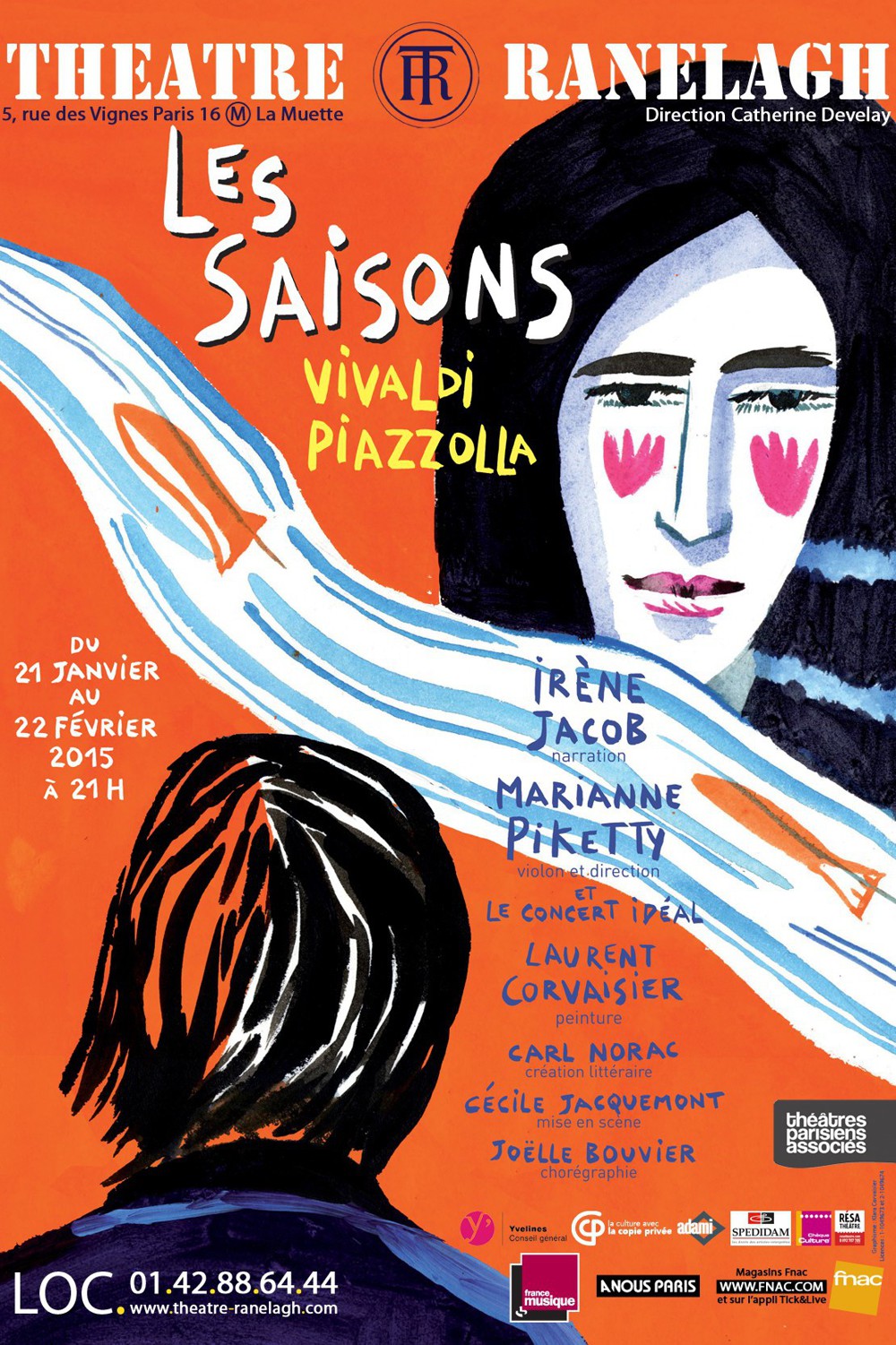 La metteur en scène Cécile Jacquemont réunit ses deux œuvres sur scène avec six musiciens dont la violoniste virtuose Marianne Piketty. Le lyrisme et la musique pastorale de Vivaldi, s’entrelacent au tango argentin, à la musique urbaine du compositeur contemporain. Dans un bouillonnant métissage de rythmes, la partition classique se frotte aux dissonances, aux coups d’archet piqués, aux staccatos et aux glissades survoltées de Piazzolla.