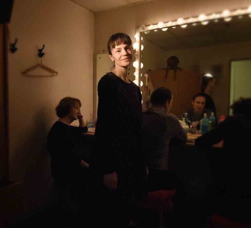Françoise Gillard diffuse avec magie la fulgurance du texte d’Annie Ernaux. Avec elle, la force du jeu est comme un fin tremblement dissimulé par lequel l’explosion arrivera sans doute, ou pas. Une image de solitude. Un petit soldat solide qui ne s’effondre pas, ou d’une manière diffuse. Ou dans un hurlement. C’est ce que l’on sent, ce qui résonne, sur scène, devant nous, à deux pas. Et pourtant, Françoise Gillard sort à peine du texte, comme si elle n’était que le résultat du vent passant sur les pages de ce bouquin que l’on voit par terre. Petite voix douce, petit corps, petites mains, mais une telle force, une telle compréhension. Une sobriété répétitive, scandée par des notes courtes sur l’agenda qui retiennent cette femme du vide, de l’aveuglement. Agenda-rambarde, lien de soi à soi qui illustre bien un enfermement certain.