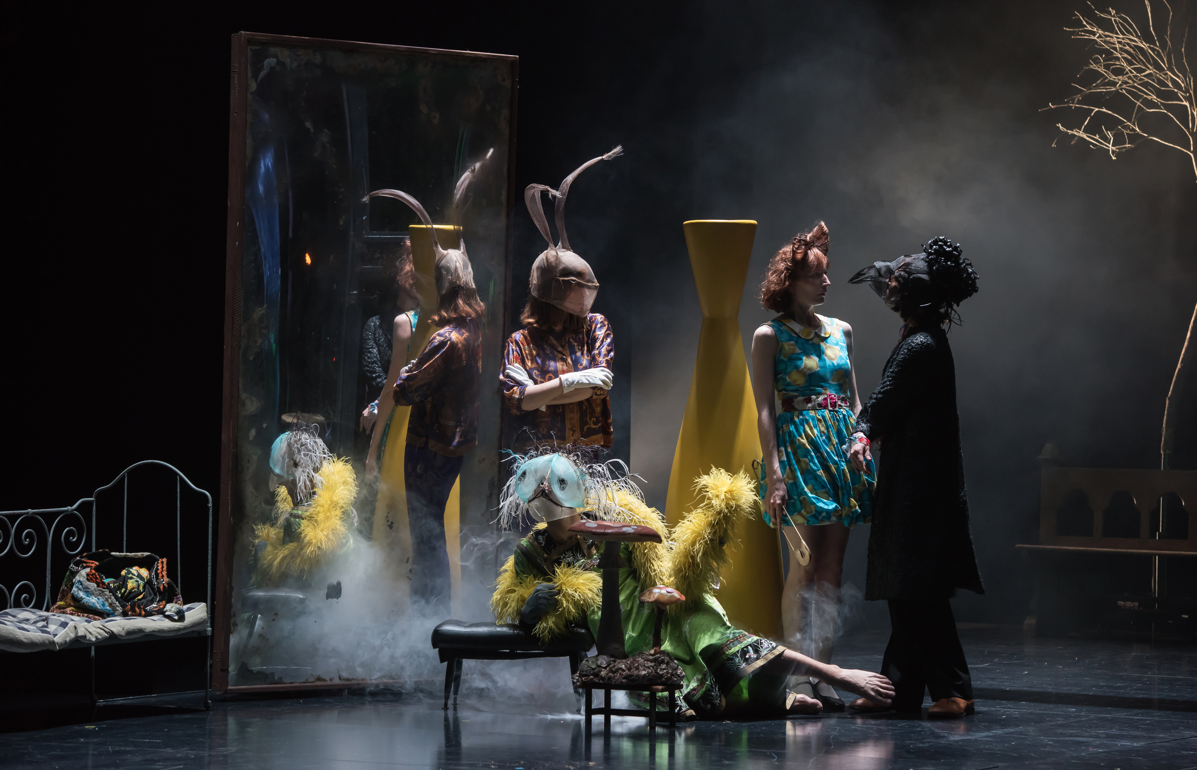 Qui donc est Charles Lutwidge Dogson ce doux hurluberlu ? Lewis Carroll diacre, professeur d’Oxford, mathématicien, photographe, collectionneur, bègue et rêveur… créateur d’Alice au pays des merveilles, La chasse au Snark, De l’autre côté du miroir. Maître de la logique et du non-sens, familier du surnaturel et des lapins blancs et dont il ne reste rien ou si peu de son univers, hormis ses livres, la famille n’ayant à sa mort gardé que ce qu’elle jugeait publiable par obsession puritaine et victorienne. Biographie lacunaire, mystère d’une vie, dont s’empare Macha Makeïeff pour une traversée du miroir, une psychanalyse d’un drôle de conte de fée, d’une vie énigmatique. Création visuelle magnifique, comme toujours, un cabinet de curiosité d’un excentrique au plus près de l’enfance. Une lumière (Jean Bellorini) entre chien et loup, de celle des rêves éveillés, entre réalité et illusion. Deux Alice et Charles flanqué de Lewis, l’écrivain et son double, pour passeurs et conteurs de cet étrange voyage. Deux miroirs, promesse d’un au-delà, d’un envers des choses et des êtres. Cet envers que traque Macha Makeïeff, comme on traque le Snark, chez Charles Lutwidge Dogson. D’étranges animaux familiers, lapins, souris, loir, chenille et même un alligator, traversent le plateau où chantent les reines de cœur et de piques, paniquent les cartes à jouer. Macha Makeïeff tisse une toile fragile faite de songe, de cauchemar… C’est un livre d’image précieux et délicat pour adulte n’ayant jamais oublié l’enfant qu’ils portent en eux.