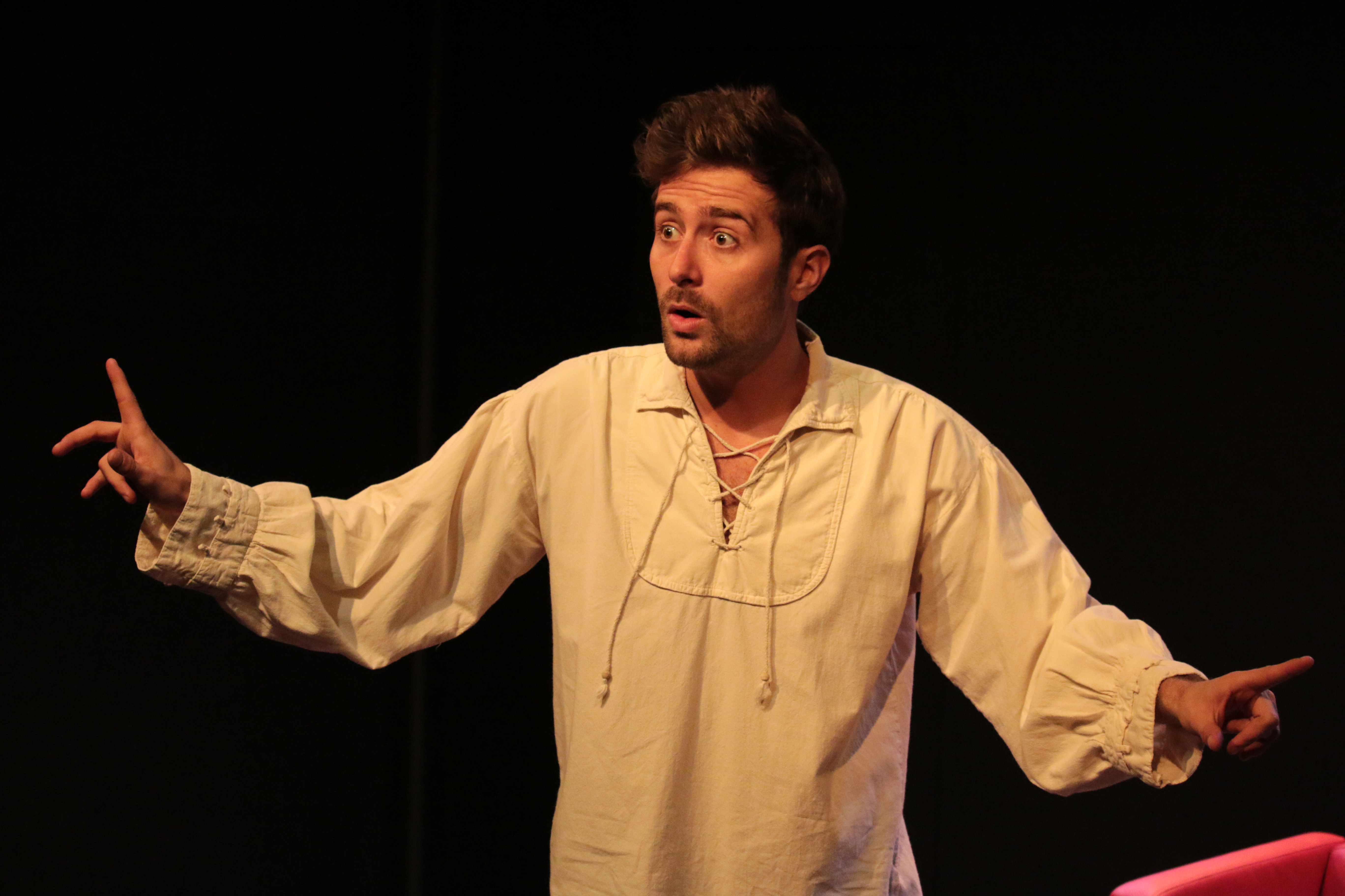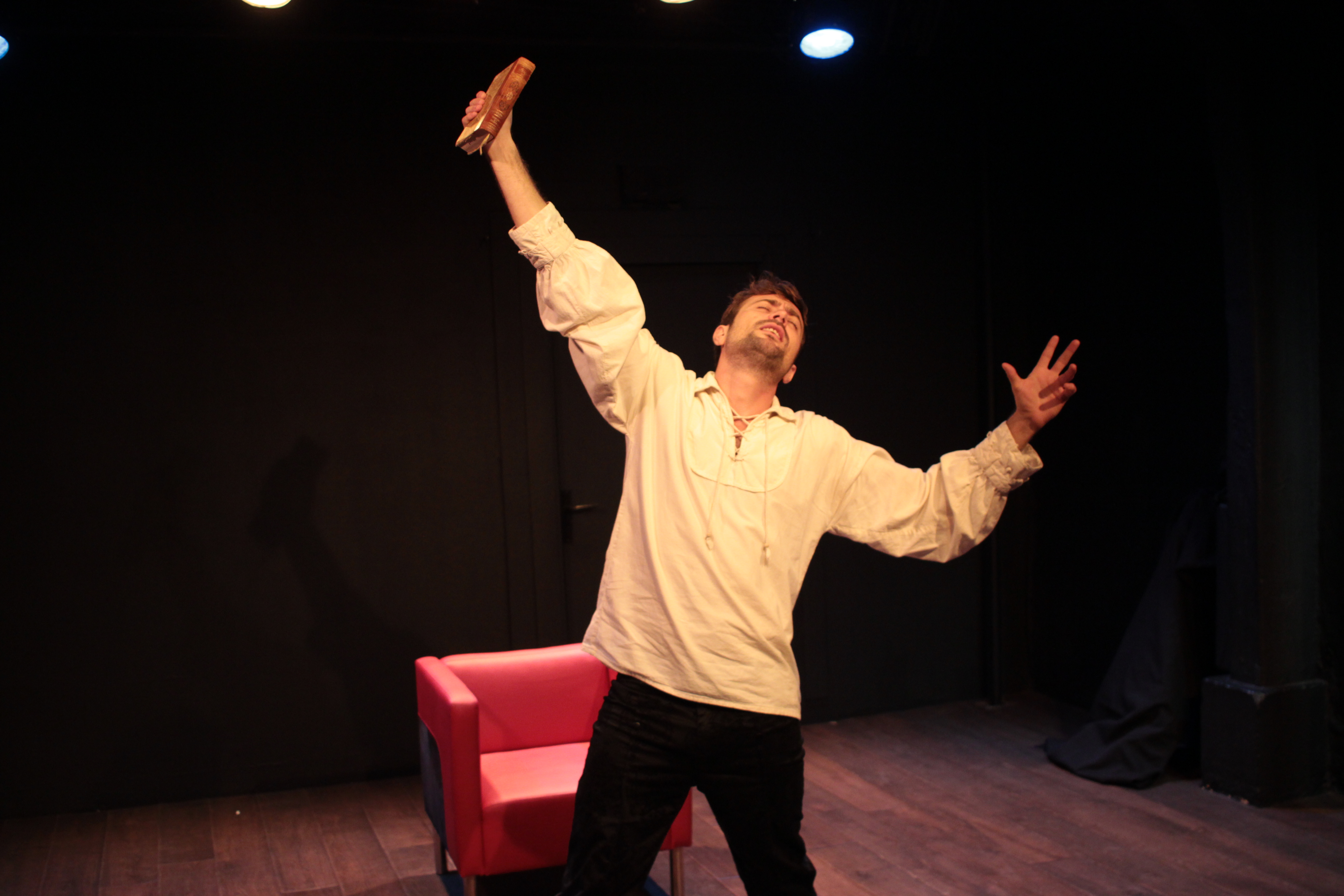 Thomas Willaime qui a signé avec Jean-Christophe Barbaud l’adaptation du texte, nous captive et nous « embarque » dès les premières secondes. Son jeu, très théâtral, nous ramène dans ce Grand Siècle où l’on est en représentation permanente et où l’expression se fait avec emphase. Le parti pris est assumé, il fonctionne parfaitement d’autant que le comédien excelle et que des ruptures nourrissent l’intérêt constant du spectateur. Thomas Willaime multiplie les incarnations : un geste, une attitude, une respiration suffisent à nous faire changer de lieu ou de personnage. Ce virtuose nous prend par la main, dès la première seconde, pour ne plus nous lâcher, passant en une seconde, du masculin au féminin avec une redoutable efficacité. Tantôt avec énergie, tantôt avec malice, alternant la fougue et la douceur, il s’épanouit avec brio dans la difficulté du rôle et fait fi de tous les obstacles. Sur la scène, un fauteuil, un livre, un grand voile noir et une guitare. Avec ces quatre simples éléments, Jean-Christophe Barbaud nous fait voyager, campe un décor, une situation, évoque une figure, démontrant qu’une mise en scène réussie est affaire d’idées et non de mobilier !