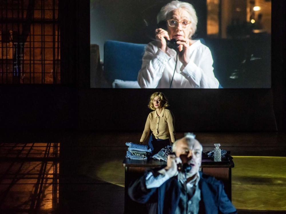 Pas pour rien non plus que dans une scène bucolique d’une ironie terrible, au sein de la Forêt Noire, Hanna Arendt et Martin Heidegger fêtent leur retrouvaille amère. A celle qui, juive, s’interrogeait sur l’origine du mal, son horreur de ce que l’homme peut faire et le devenir du monde, où la pensée se doit d’être action répond l’aveuglement de Heidegger inscrit pour un temps au parti nazi, son désintérêt de la politique et pour qui « seul un Dieu peut encore nous sauver ». L’épopée d’Izolda jusque dans l’horreur est une réponse cinglante et concrète que les dieux sont bien morts et que seule l’action, puisqu’il ne reste qu’elle, l’instinct de survie peut sauver. Krzysztof Warlikowski brouille la temporalité, le temps de la mémoire et le temps de la fiction ne sont pas celui de l’horloge qui à jardin égrène le temps de la représentation. Au récit de la vieille Izolda scénarisé par Hollywood, qu’un bout d’essai donne à voir, répond la réalité crue et violente des scènes vécues par Izolda jeune, loin de tout glamour. Scènes filmées et projetées en direct qui dénonce une réalité, là encore insupportable. On pendule ainsi d’une temporalité à l’autre, et Krzysztof Warlikowski ne précipite ni ne bouscule jamais les récits qui se croisent, maître du rythme de la représentation où le temps est comme suspendu, entre rêve brouillé et cauchemar létal. Il faut accepter ce rythme faussement étal qui lentement, insidieusement vous prend dans ses rets et ne vous lâche plus.