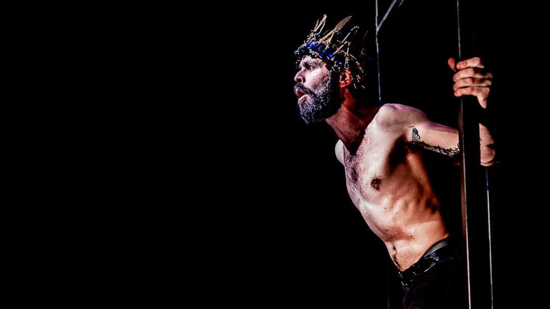 Tout commence avec des structures métalliques et une marionnette géante. Le roi. Le pouvoir est tout de suite énorme, tentaculaire. Et dans cette ambiance, tout sera tonitruant et sombre. La mise en scène d’Aurélie Derbier nous emmène dans un univers opéra-rock où la texture et la matière sont maîtresses. Le métal, le cuir, tout nous renvoie à un univers rock sombre et très énergique. Les comédiens collent à cette énergie, les voix sortent fort, les corps sont ultra-toniques, tout bouge énormément. Presque trop, à certains endroits.