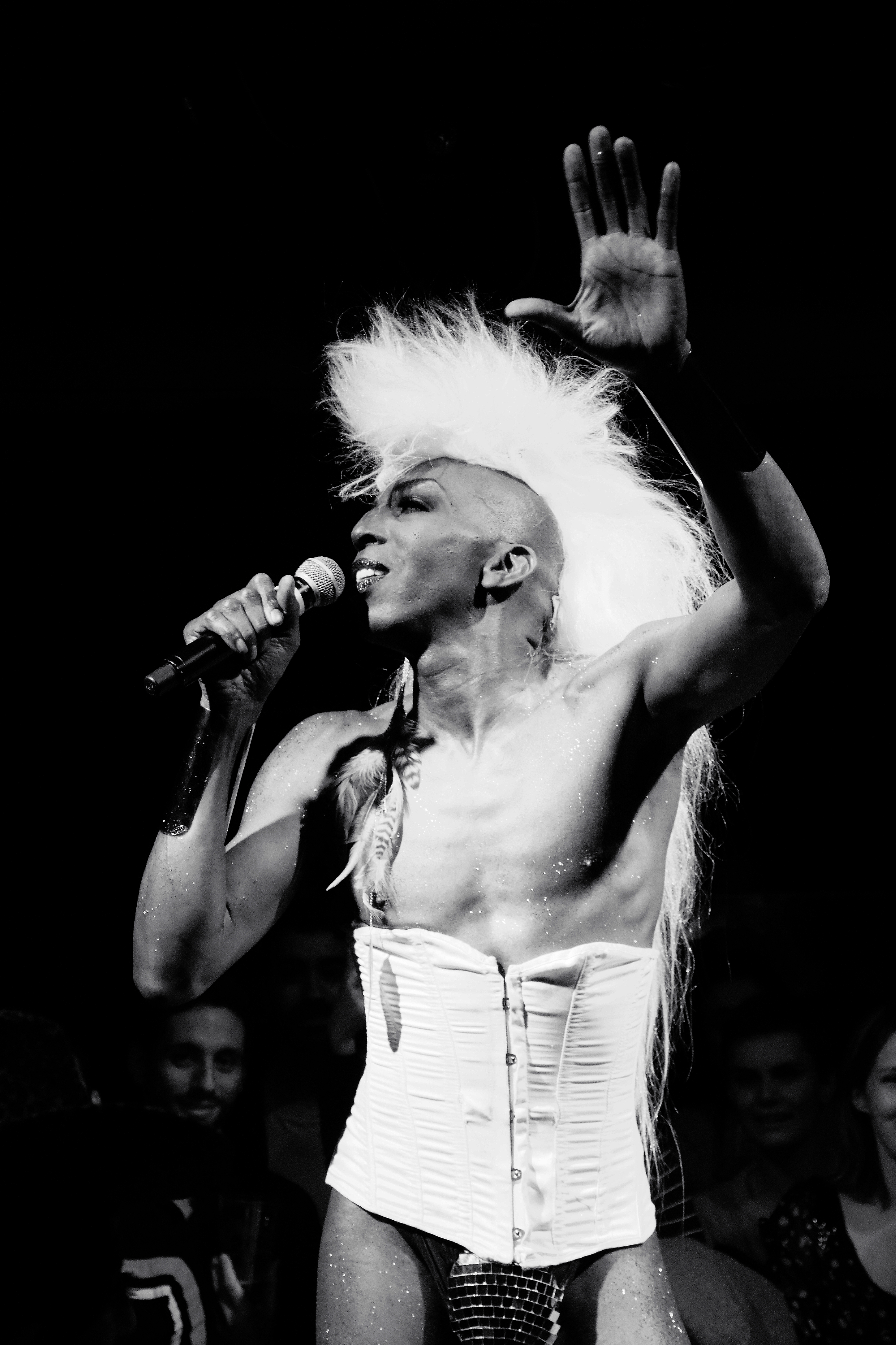 Jamais dans l’imitation mais bien dans l’interprétation et la performance, elles empoignent avec délicatesse, disloquent et mettent à nu les textes qu’elles tirent à elles sans jamais en dénaturer l’essence. Pas de poudre de perlimpinpin malgré les paillettes, sous le strass c’est du sérieux. L’extravagance affirmée n’empêche en rien la rigueur et la profondeur, la vérité des voix. De sacré voix par ailleurs, entre blues, rock et variétoche, et ne font jamais oublier qu’ils sont des chanteurs avant toute chose et de la meilleure eau. La gravité sous le cynisme bravache apparent de Corrine, la folie furieuse et hystérique de Patachtouille, la sensualité rauque de Brenda Moor (et quelles jambes !) font merveille et de chaque chanson mises en scène un voyage en solitaire partagé par un public chamboulé, bousculé avec soumission et plaisir masochiste par Corrine, maîtresse loyale et de cérémonie, loin d’être funèbre. Chacune ou chacun comme on voudra, les notions de genres sont allégrement transgressées cul par-dessus tête, poivre à sa façon unique chaque texte et démontre sans paradoxe combien Alain Baschung était un immense auteur, d’une sensibilité écorchée, un univers entre chien et loup oscillant entre amours dézinguées et douce violence, à la marge toujours des conventions têtues, d’une poésie solaire et brumeuse, énigmatique parfois. Et ça, nos queens pailletées elles savent, qui du fond des cabarets interlopes beuglent avec un foutu talent ces amours ravagées, sublimées, fantasmées, capables de transfigurer la moindre rengaine en tragédie. On se dit que oui, il y a chez Alain Bashung l’échos blues et rock des torch-song propre au drama-queen, plus âpres que larmoyant, certes, et que ces trois-là, ajoutons Charly Voodoo, ont toute légitimité pour défendre toute griffes laquées sorties cette brève anthologie qui porte l’amour en bandoulière, pour citer Alain Baschung lui-même. C’est donc en sautoir qu’elles le portent haut, elles qui savent aussi se dépouiller de leurs attributs clinquants de vierges folles, laissant tomber perruques, plumes et falbalas pour apparaître comme la vérité toute nue sur « Madame rêve », remettant pour ainsi dire les choses à plat et sans faux plis dans un final auquel on ne s’attendait pas. Ces créatures-là, ayant pris crânes la contre-allée, sont avant tout et plus que tout de sacrés et talentueux artistes, de grandes dames de la chanson !