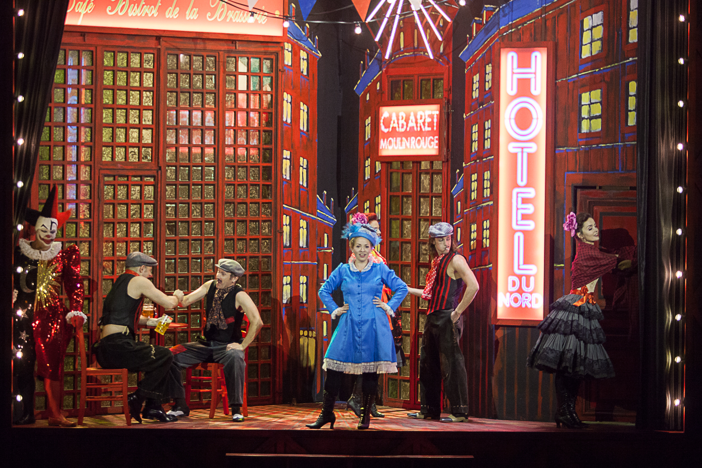 Dans le coin des dames, l’émotion est à son comble, et les questions fusent : « Mais la mère supérieure, ce ne serait pas… un homme ? Non, parce qu’ils ont quand même tous des carrures, euh… ». La réponse est très simple : la mère supérieure est campée par Miss Knife, que le corps d’Olivier Py habite souvent. Quant aux carrures, précisons quand même que la plupart des chanteurs-acteurs-danseurs-circassiens en scène révèlent des corps musclés, suants, tatoués, à la précision de gymnaste et la grâce de funambules. Mise en scène par Pierre-André Weitz, cette Mam’zelle Nitouche a fait un stage chez Madame Arthur. C’est Hervé, Pierre et Gilles tout à la fois, et plus Gay Paris que Gai Paris. Des slips sous les soutanes, des strings sous les cornettes. Culottes et calottes, même combat.