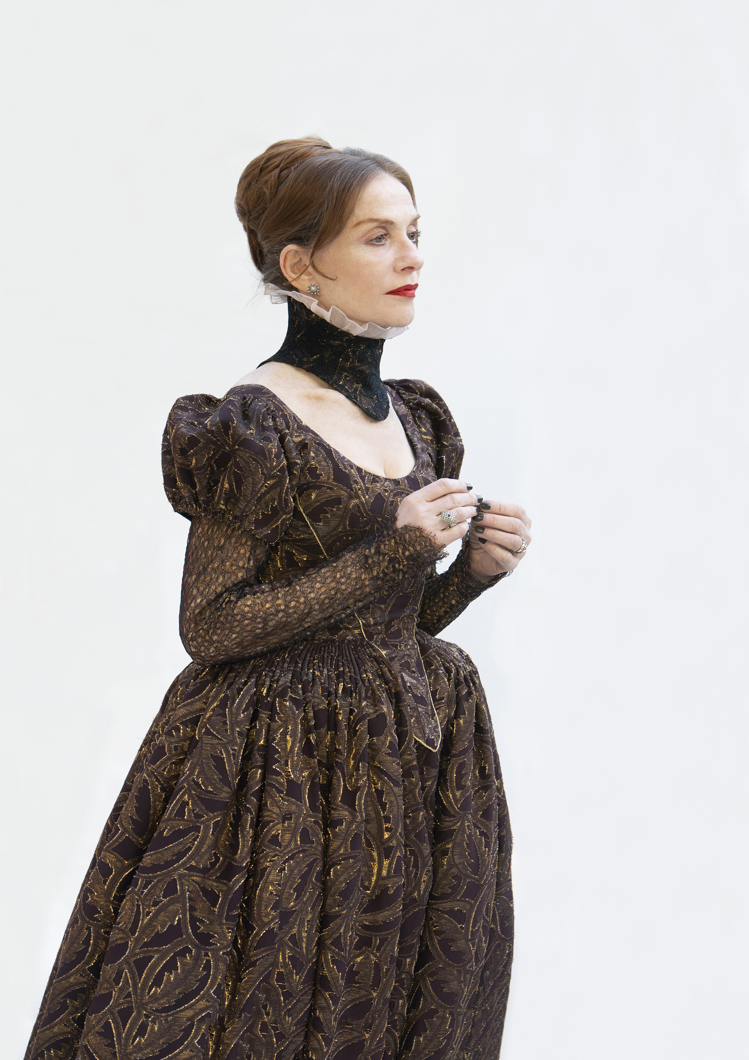 Isabelle Huppert est Mary Stuart, reine d’Écosse, trois fois mariée, gardée en captivité pendant 19 ans, et finalement décapitée. Tout une vie réduite à une tête.