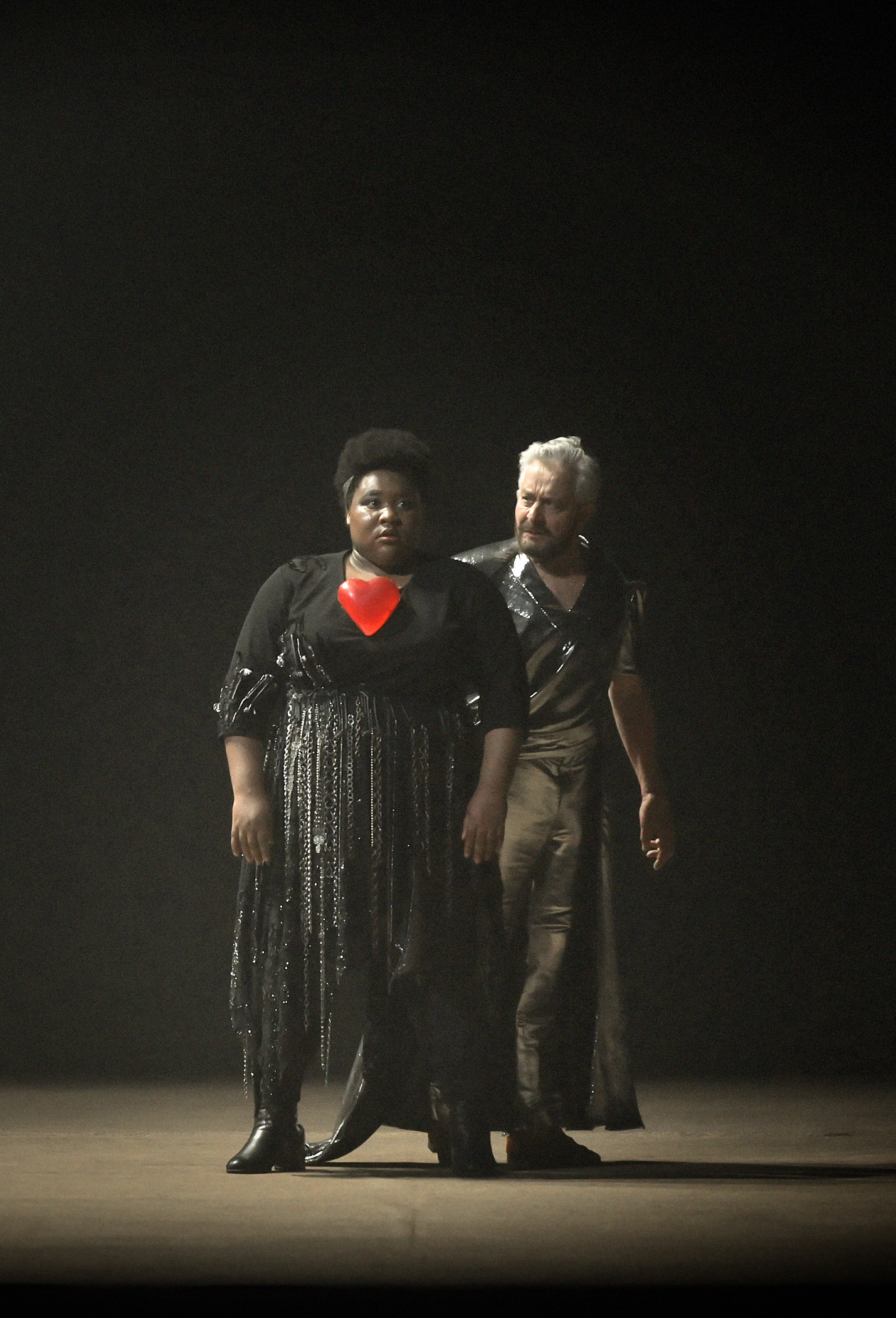 La tragédie est affaire de sidération, le meurtre des enfants en est ici l’acmé, une résolution farouche et violente par le sang d’une affaire aussi bien intime que politique. Alors pourquoi les dématérialiser et les remplacer par deux ballons de baudruches bientôt crevés d’un coup de ciseau pour l’un, écrasé entre les cuisses pour l’autre, annulant de fait l’inouï de l’infanticide, ce geste qui libère les enfants de leur bâtardise, et prive Jason de sa descendance ? Il y a là comme la négation, le refus du fait tragique même et de sa catharsis. Pourquoi introduire, alors qu’elle n’est qu’évoquée, Aphrodite que Médée étrangle. Si l’image est forte elle n’apporte rien à ce qui est proféré par Médée et souligné par Lisaboa Houbrechts, « Je ne veux plus désirer ». C’est encore une fois le symptôme de cette mise en scène qui oscille entre souligner d’un trait épais ce qui est exprimé avec une économie implosive par Euripide ou d’annuler plus que dénouer par une volonté formelle et têtue les nœuds de cette tragédie. On ne peut reprocher à Lisaboa Houbrechts d’avoir une véritable vision esthétique et une approche du plateau originale mais ici quelque chose ne va pas, l’ensemble est boiteux, et comme les comédiens, le chœur particulièrement, nous sommes quelque peu désarçonné, cherchant un point d’équilibre à tout ça qui n’advient pas. Et l’on a vu les comédiens du Français bien plus inspirés, davantage dirigés sans aucun doute. Ici, ils semblent flotter, sans direction précise de jeu, désorientés. Ainsi voit on Didier Sandre, Créon en tenue argent digne d’un space-opera, tournicoter en cercles concentriques autour de Médée, comme livré à lui-même.