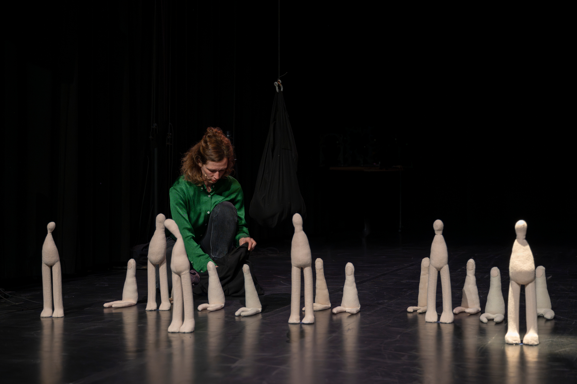 La performeuse Sarah Vanhee remonte la généalogie des femmes de sa famille. Mémé et Oma ses deux grand-mères, deux paysannes de Flandre, deux destins de femmes invisibilisées par le patriarcat. Interdites d’éducation, dévolues au travail, aux travaux domestiques, à la sexualité sans consentement, à la reproduction subie et l’éducation des enfants. Femmes taiseuses, sans amour, aux corps épuisés, aux destins contrariés. Une souffrance tue empesée de silence. Sarah Vanhee fait acte de réparation, un hommage sensible convoquant sur le plateau le fantôme de ses grand-mères pour comprendre la douleur, les souffrances familiales, ces traumas invisibles qui traversent les générations, hérités de mères en filles. Seulement ici il n’est question que de réparer, de nouer le passé au présent, au futur également, geste d’apaisement et de réconciliation. La présence en vidéo du fils de Sarah Vanhee, qui n’a jamais connu ces femmes est un moment d’une douce émotion qui voit cet enfant inventer une cérémonie pour les convoquer, rompre en quelque sorte l’absence en creux de ces femmes dont il ne connaît rien, ou que par le récit forcement partiel de sa mère. Bientôt il leur fait visiter l’appartement qu’il occupe, sa chambre, leur offrant ces jouets les plus chers. S’inscrivant ainsi, lui aussi et de façon tangible et symbolique dans un héritage familiale, projetant celui-ci dans l’avenir. La richesse de cette mise en scène inventive et épurée tient en peu de choses. Une simplicité de moyen qui laisse toute la place au récit. Une simple robe descendue des cintres pour évoquer Mémé. Quelques poupée de chiffons que l’on sort d’un sac, chacune portant le prénom des 9 enfants de Mémé dont la mère de Sarah Vanhee et d’autres encore pour les petits-enfants. Geste qui n’est pas sans évoquer celui des semeuses ou des glaneuses, métonymie de ce que furent leur condition. Poupées aux contours flous comme bientôt effacés par le temps mais dont la présence fantomatique sur le plateau prend une étrange et poétique réalité. Un théâtre d’ombre aussi pour illustrer la vie d’Oma qui rêvait d’un autre destin. Un brouillard épais envahissant le plateau, celui matinale des campagnes mais subtile évocation des silences têtus qui entourent ces femmes et leur condition, les vouant à l’invisibilité. Ou des non-dits aussi, comme celui qui entoure Oma et ces séjours en hôpital pour dépression, qu’on n’appelait pas encore ainsi, les électrochocs subis, refusant d’entendre la douleur profonde due à sa condition. Sarah Vanhee déroule un récit familiale et intime qu’elle fictionne volontairement, poétise avec raison, lui donnant ainsi une portée plus générale et politique, universelle. Et il y a cette dernière séquence, la dernière image, une séquence peut être un peu trop longue mais qu’importe tant la sincérité et la nécessité l’emportent, où Sarah Vanhee installe confortablement deux grandes poupées de chiffons, Mémé et Oma, avec qui elle entame un dialogue, celui qu’elles n’ont jamais eu sans doute, que Sarah Vanhee aurait aimé avoir certainement, partageant ses lectures, romans et traités féministes qui déterminent sa vie aujourd’hui et éclairent cette performance. On mesure alors l’écart irréductible qui les sépare et l’importance du devoir de mémoire. A l’heure où les droites extrêmes et les extrêmes droites arrogantes remettent en question les droits des femmes, on songe à Simone de Beauvoir, « rien n’est jamais définitivement acquis. Il suffira d’une crise politique, économique ou religieuse pour que les droits des femmes soient remis en question. Votre vie durant, vous devrez rester vigilantes. » C’est à cette vigilance, à l’aune de l’histoire de Mémé et Oma, qu’appelle cette création qui derrière sa douceur masque mal l’histoire pérenne de la violence faite aux femmes.
