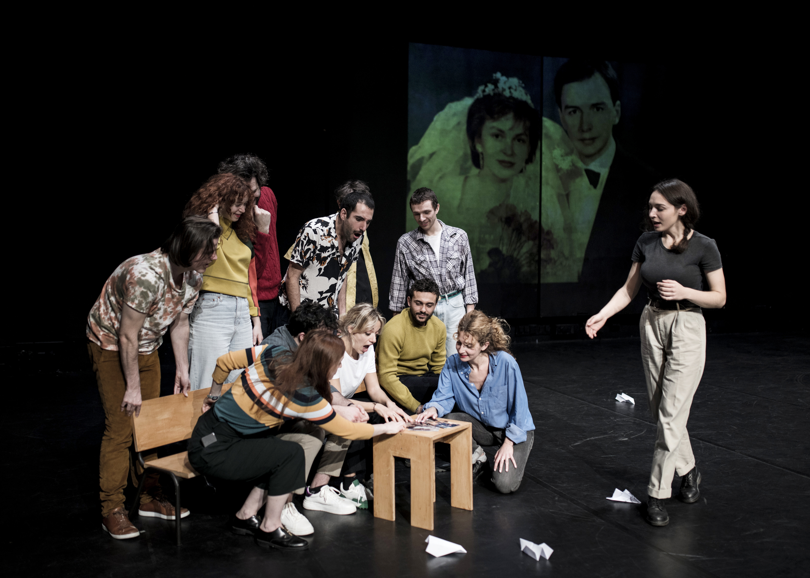 C’est ainsi une dizaine de jeunes comédiens, âgés de 20 à 27 ans, qui nous livrent des fragments de ce que sont leurs parents : petits secrets de famille, photos de mariage ou encore journaux intimes de leurs parents. Et à travers eux, ce sont des portraits touchants, cocasses ou dénonciateurs qui se font jour. Mais aussi et surtout, des liens invisibles et révélés par les mots et les corps, ceux, indéfectibles des parents et de leur progéniture.
