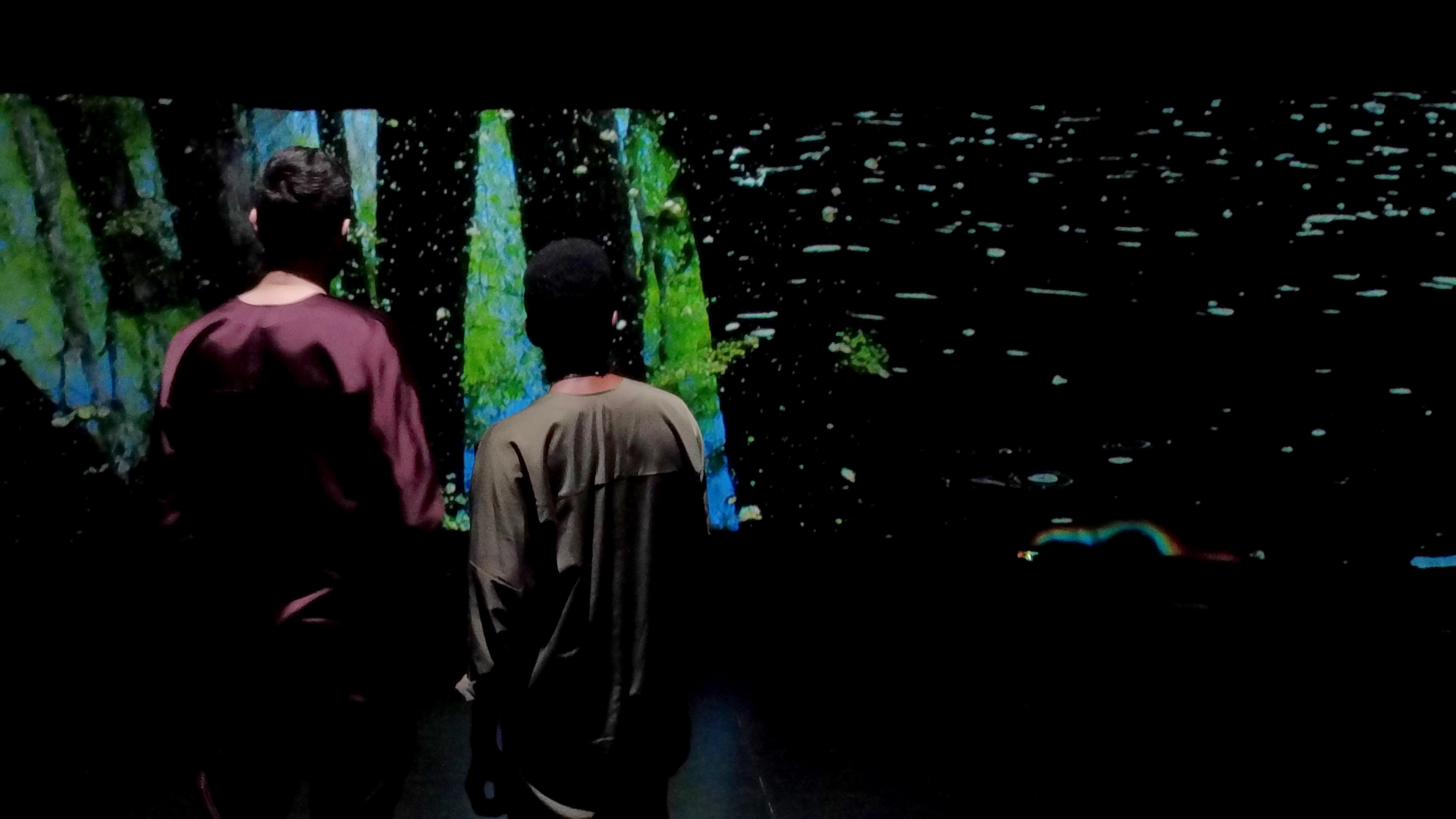 Au fil de l’eau, comme le fil du temps. Il est vrai que les premiers philosophes usèrent déjà de cette métaphore et de la rivière et du fleuve comme image de ce flux intarissable, irrésistible, qui n’est jamais deux fois le même. Duncan Evennou construit lui-même son œuvre aux confluents de différentes disciplines, la sociologie, l’installation vidéo, et l’art dramatique. Prenant place sur le plateau de la Ménagerie de verre, dont les épaisses poutres métalliques soutenant un plafond bas ne manquent pas d’évoquer les cales d’un paquebot, MississippiS se construit sur le récit choral d’une expédition en canoë mêlant scientifiques, artistes, descendant le fleuve Mississippi depuis le lac Itasca, sa source, jusqu’à la Nouvelle Orléans. L’aventure n’eut pas lieu au XIXème siècle, ou à d’autres époques plus lointaines, riches en épopées exploratoires, mais tout récemment, en 2019, financée par une institution allemande afin de juger de l’impact des activités humaines sur le changement climatique.