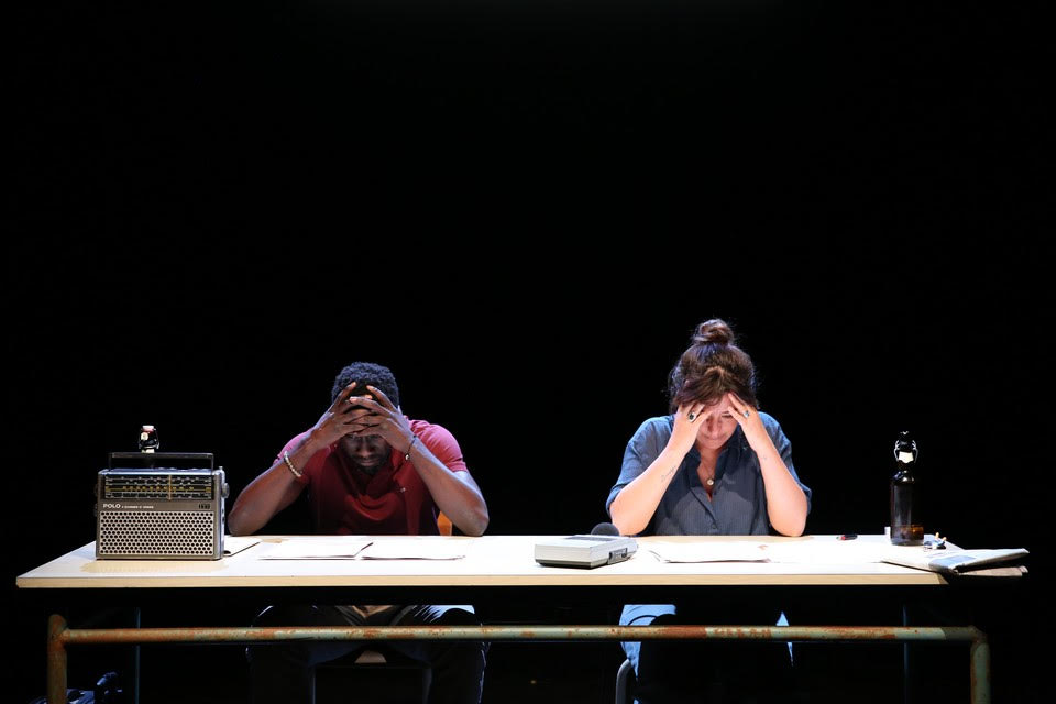 A la croisée du théâtre documentaire et du récit intime, Mon pays, ma peau prend la forme d’une lecture-spectacle, ainsi l’a souhaité Lisa Schuster pour permettre un rapport direct avec le public. Et l’effet est réussi, grâce à une émotion palpable malgré la mise en scène réduite à quelques déplacements. Le charisme des deux comédiens et leur investissement dans l’émotion nous aide à passer la barrière des feuilles blanches d’où les mots s’échappent.