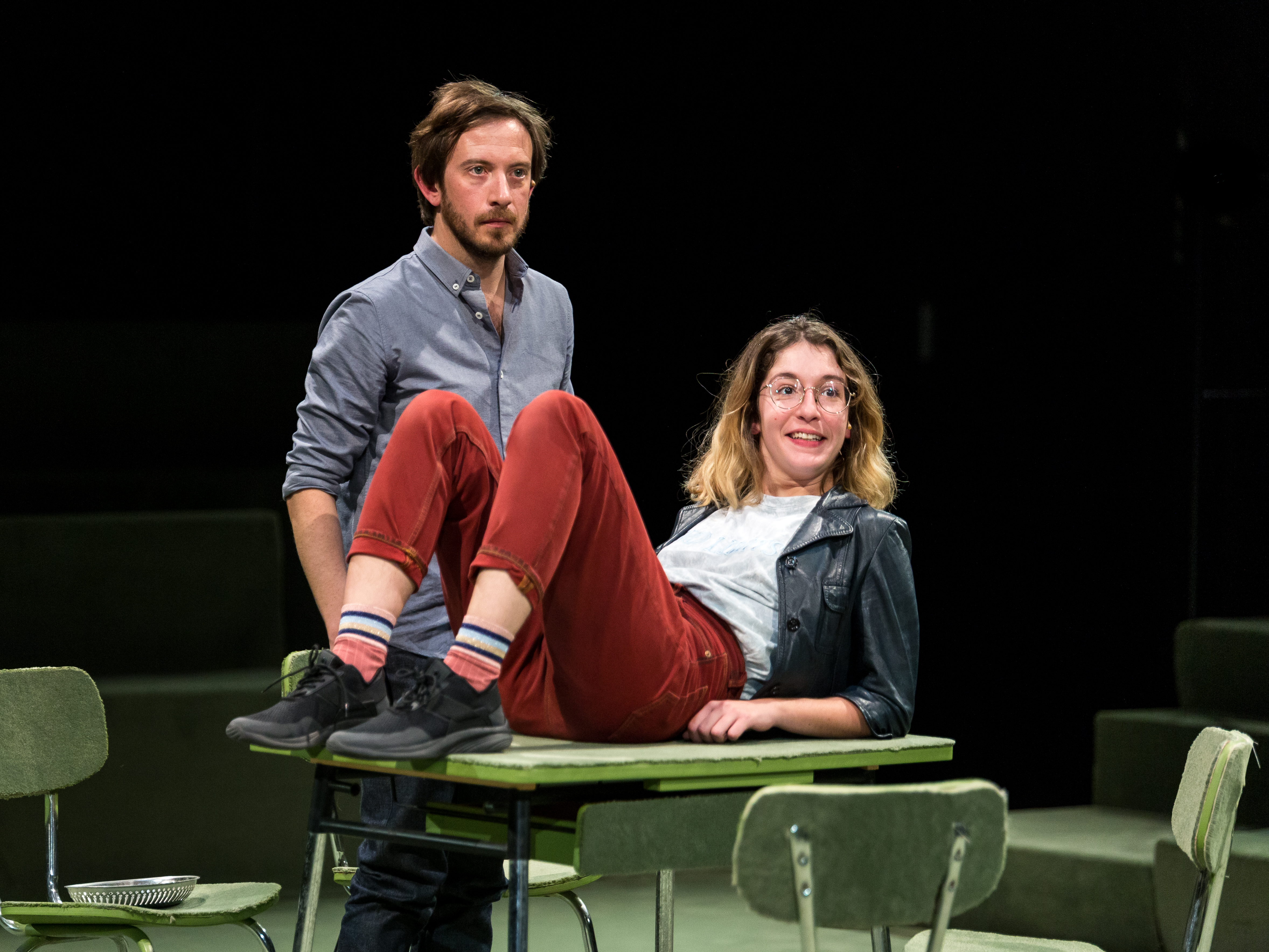 Mon père, de Christophe Honoré, a été publié en 2017 et Thomas Quillardet a été séduit immédiatement par ce livre s’avançant sur un fil tendu, entre enquête douloureuse, savoir qui dépose des petits mots, des photos souhaitant plus qu’inquiéter un homme qui, en plus d’être homosexuel, est papa, rendez-vous compte, la fin du monde ! Et puis des souvenirs, des échos sur l’homosexualité toute simple qui débarque chez un ado breton, qui sait embrasser, qui écrit très bien et s’appelle Christophe, flottant dans une famille n’envisageant pas deux garçons être heureux ensemble. Il y a aussi l’éducation d’une gamine de 10 ans, avec la maman-amie, les amants, l’ex, etc.