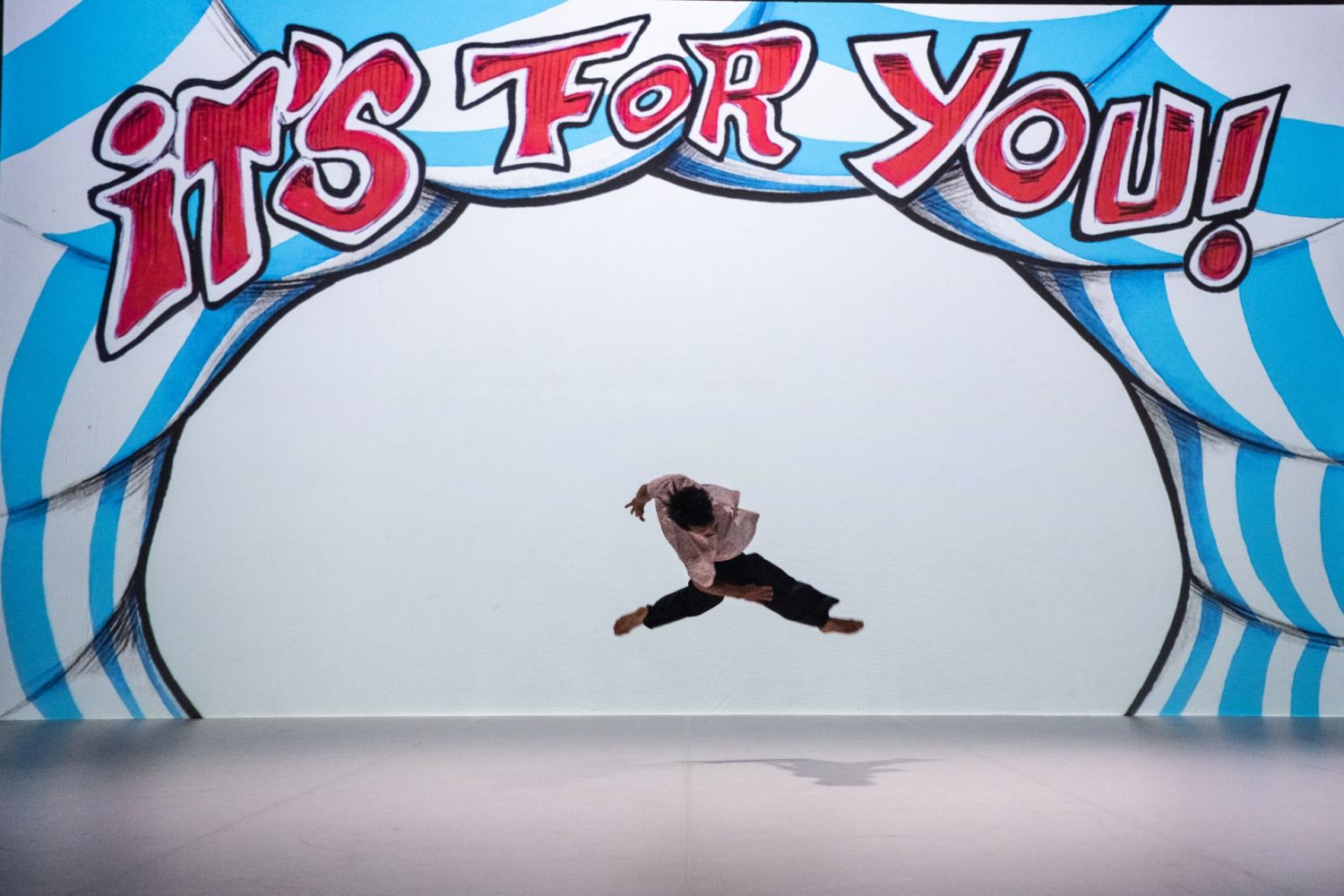 Le public, encore une fois, c’est très bien tenu, un peu timide sans doute, même si tout semblait très bien fonctionner. Une joie certaine voletait, et le travail de Salvatore Cappello, Nicola Simone Cisternino, Riccardo Guratti, Fabio Magnani, Timothée-Aïna Meiffren – il faut les nommer ici – fonctionne parfaitement : danse sans en être une, cirque, rêves et jeux avec les images que tous ont créées lors de leur « invention » du spectacle avec Silvia Gribaudi, chaque instant baigne dans une mini pureté sympathique, sans aucune prétention. Et les cinq (ou six quand Silvia Gribaudi est là) « tendres et efficaces » répètent en italien, français ou anglais, « It’s for you ! » et d’autres mini interjections splendides !