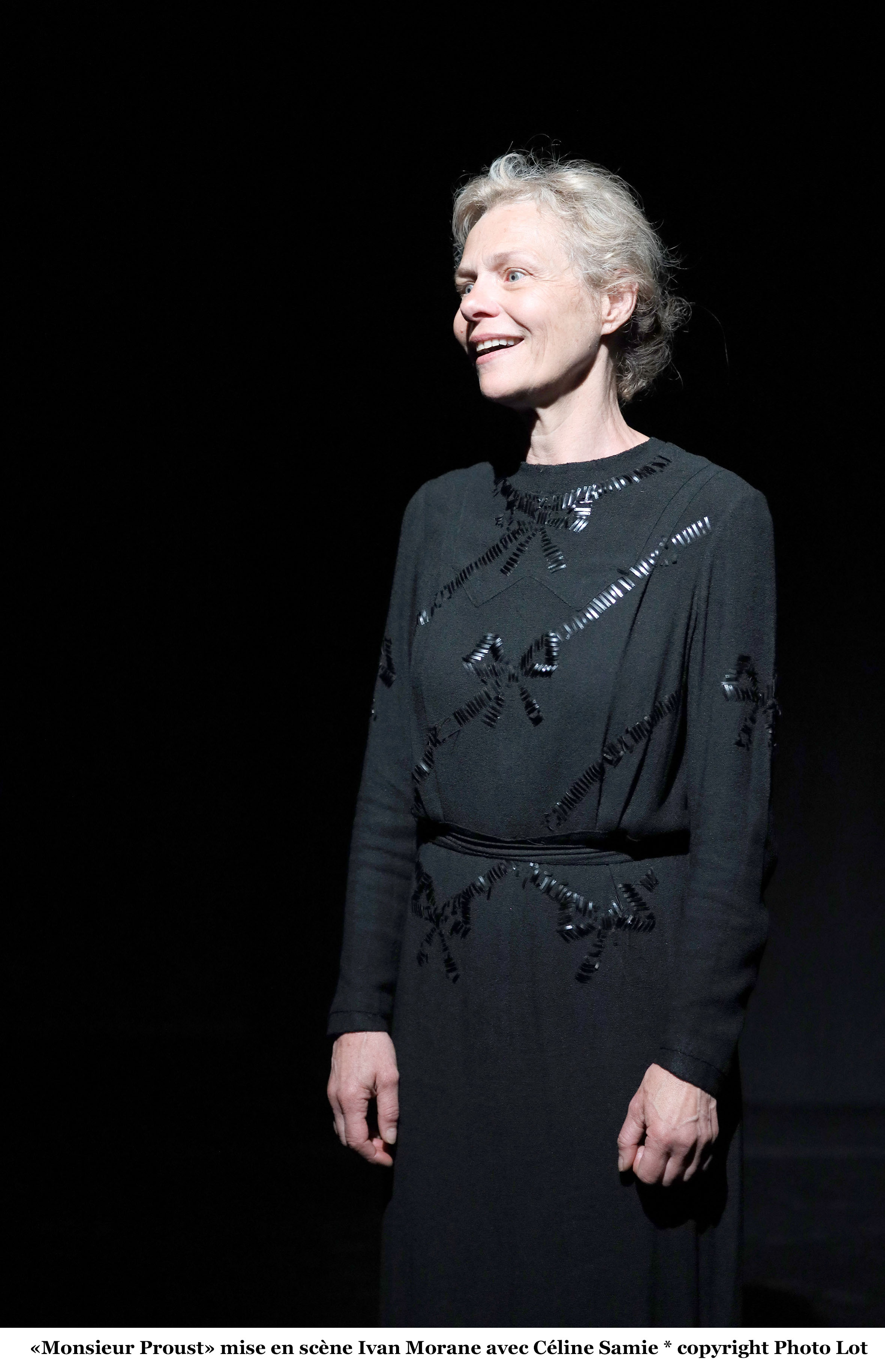 Le temps suspendu. Il y a 100 ans mourrait Marcel Proust. A son chevet, celle qui fut à son service les huit dernières années de sa vie, Céleste Albaret. Céleste dont Proust avait prévu combien elle serait sollicitée après sa mort, se murât dans le silence jusqu’en 1973, acceptant à 82 ans un entretien avec le journaliste Georges Belmont. De ces entretiens et du livre qui en sortit, Monsieur Proust (Ed. Robert Laffont), Ivan Morane a fait matière pour cette création qui n’est pas tant un portrait de Proust que de Céleste elle-même. C’est son portrait à elle, cette femme de l’ombre, admirative de son patron, ayant un sens du récit inégalé, qui est mis en lumière. De la jeune paysanne épousant Odilon Albaret, chauffeur de taxi et quelque fois de Marcel Proust, entrant au service d’un homme malade, à celle qui se dévoua toute entière pour celui qu’elle considérait parfois comme son fils, c’est un monde singulier qu’elle traversât, croisant Fauré, Gallimard, Gide (qu’elle surnommait le faux-moine)… une société également en agonie qui, avec la mort de l’écrivain, disparut avec lui. Portrait tout en nuance d’une femme qui découvrait, observait et se taisait, ne dialoguant qu’avec « Monsieur Proust ». C’est dans cette relation privilégié avec cet écrivain, qu’elle mettait au centre de tout, que nous découvrons le portrait de Céleste qui, loin d’être compassée, était drôle, généreuse, sensible et intelligente. Mutique et réservée, entrée un peu par hasard dans l’appartement du boulevard Hausmann, bientôt établie gouvernante en ces lieux, entre ces deux-là, ces deux mondes si distincts, un dialogue ininterrompu fait de curiosité mutuelle, d’une certaine complicité se nouât. Racontant Proust c’est elle même qu’elle raconte, dans ce rapport exceptionnel avec un écrivain attelé jusqu’à sa mort au roman d’une vie. Céline Samie s’empare de ce personnage avec le talent et la générosité qu’on lui connait, pour qui la découvrit à la Comédie-Française dont elle fut sociétaire. Ce sont toutes les facettes d’un personnage éminemment théâtral qu’elle déploie, de la jeune femme naïve et enthousiaste, empressée, à la gouvernante éblouie mais lucide et respectueuse, de l’observatrice ironique des faux-semblants du monde littéraire à la lectrice émue des Trois mousquetaires… Du premier croissant apporté dans une chambre enfumée des fumigations d’un asthmatique, son premier contact avec Marcel Proust, à l’agonie de ce dernier dont elle fut le témoin bouleversé, c’est huit années suspendues d’une vie traversée avec curiosité, compréhension et compassion, récit d’un apprentissage que Céline Samie restitue avec une belle sensibilité. Assise sur cette simple chaise de paille posée là, sur un plateau nu que découpe la lumière, c’est plus qu’un monde englouti et plus que Proust sacralisé qu’elle fait revivre à travers les yeux de cette « chère Céleste », c’est Céleste elle-même qu’elle révèle et sort de l’ombre.