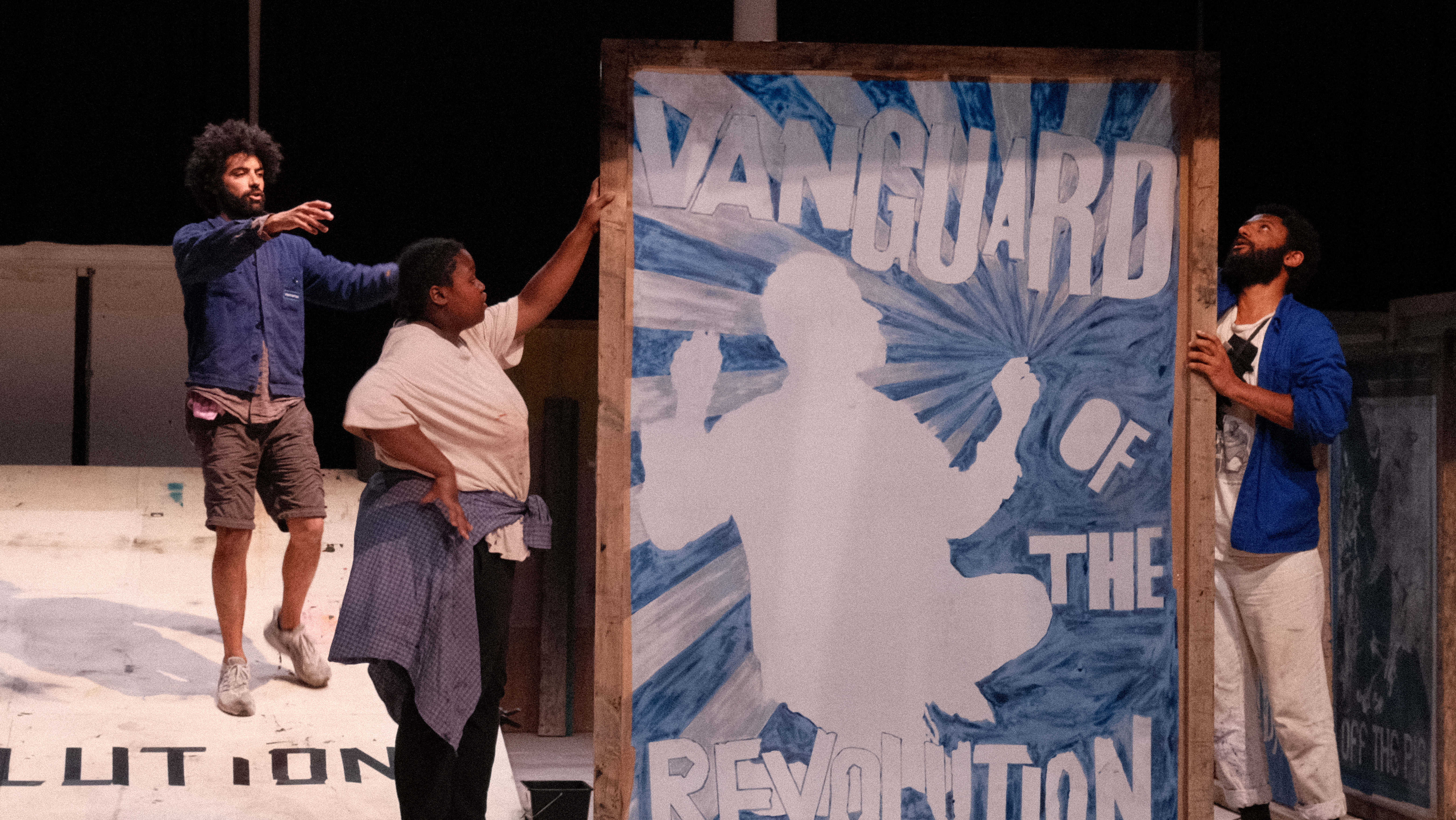 Joris Avodo, Maxence Bod et Camille Leon Fucien ont l’abattage qui convient à ce road movie, aux antipodes des extrémistes violents décriés par les autorités. Fougue et concentration, chant et danse, le jeu des acteurs mélange les genres, harangues, blues, musique, tractages, impressions, affichages. On sent la complicité de l’équipe artistique et la vitalité joyeuse d’un mouvement d’avant-garde au service des idées. Un livre de droit, un magnéto, un revolver, le rapport de force avec la police est bien rodé.